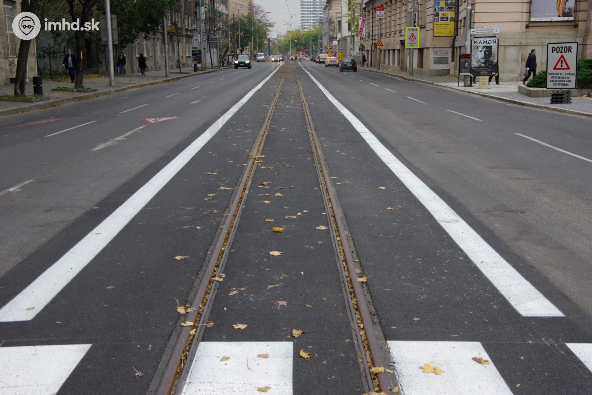 Zrekonštruovaná električková trať na Vajanského nábreží.
