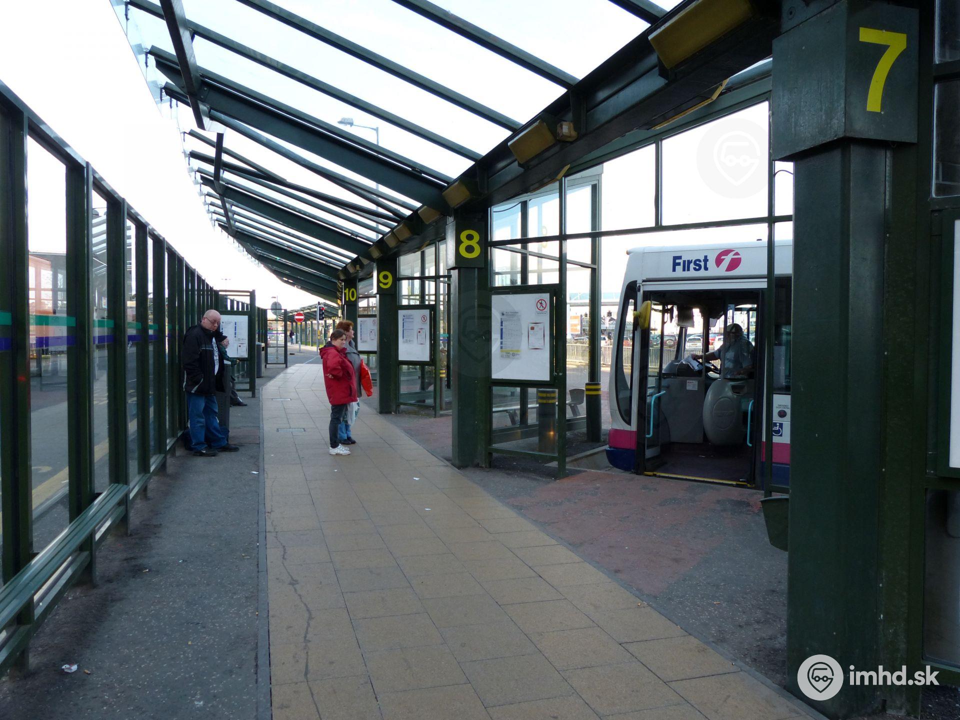 Nástupištia na autobusovej stanici.