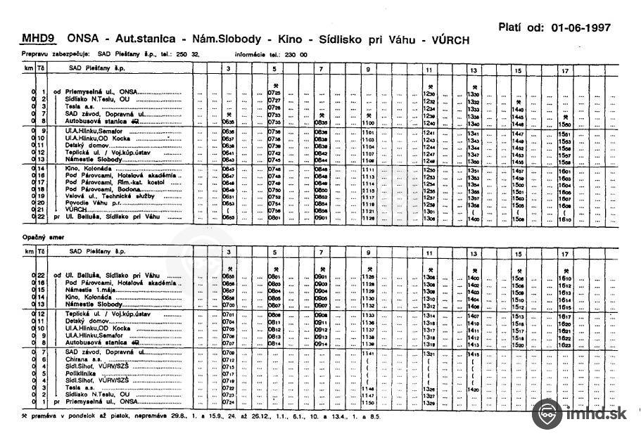 Cestovné poriadky platné od 1.6.1997 (1.10.2007)