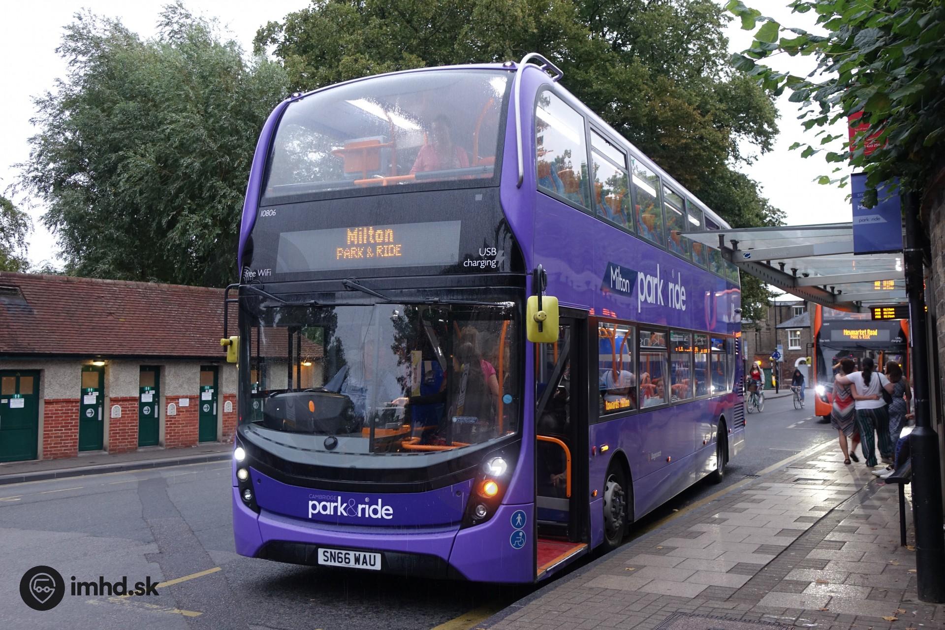 Fialový Alexander Dennis Enviro400 MMC z Cambridgu.