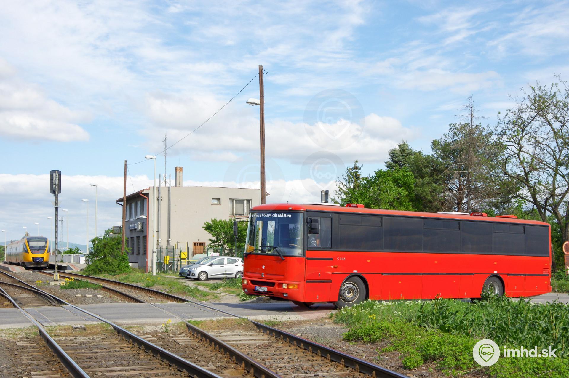 Autobus náhradnej dopravy na linke S70 počas výluky vlakov v úseku Nové Košariská - Kvetoslavov. Karosa C 954E patrila pôvodne spoločnosti Slovak Lines.