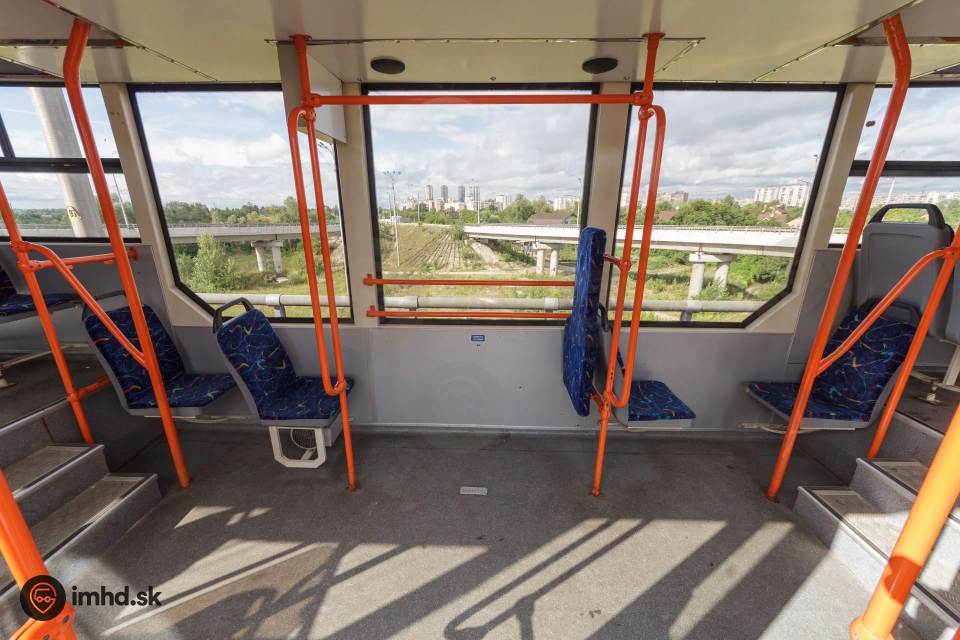 Pohľad do interiéru modernizovanej električky T3UA-3 “Kashtan” z roku 2012