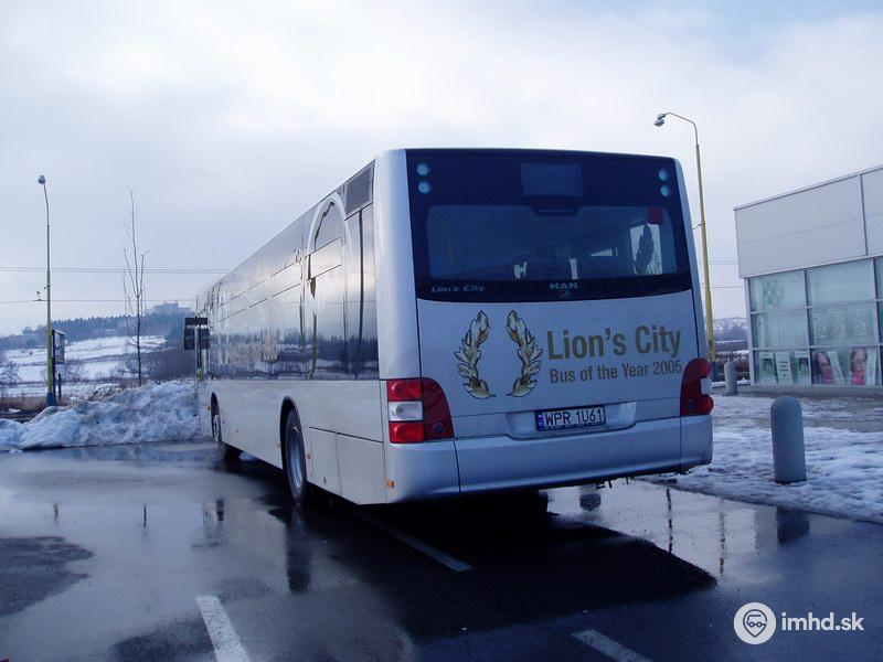 Skúšobný autobus MAN Lion´s City na Sekčove na parkovisku pred Hypernovou.
