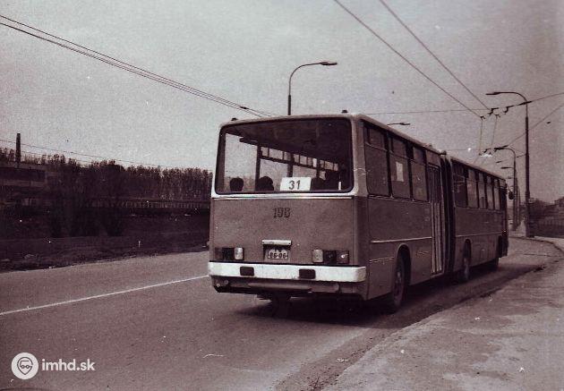 Ikarus #196 na ešte zatrolejovanej Košickej asi v 1. polovici 80. rokov.