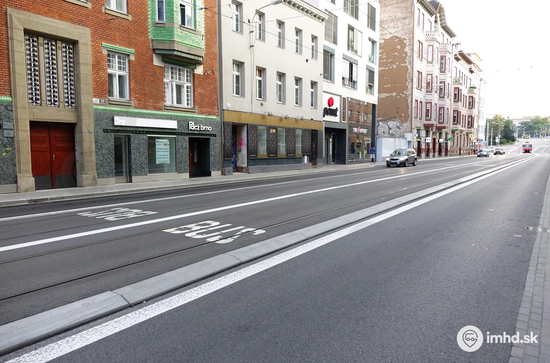 Električková trať, ktorá súčasne slúži aj ako buspruh, je oproti jazdným pruhom pre individuálnu dopravu vyvýšená.