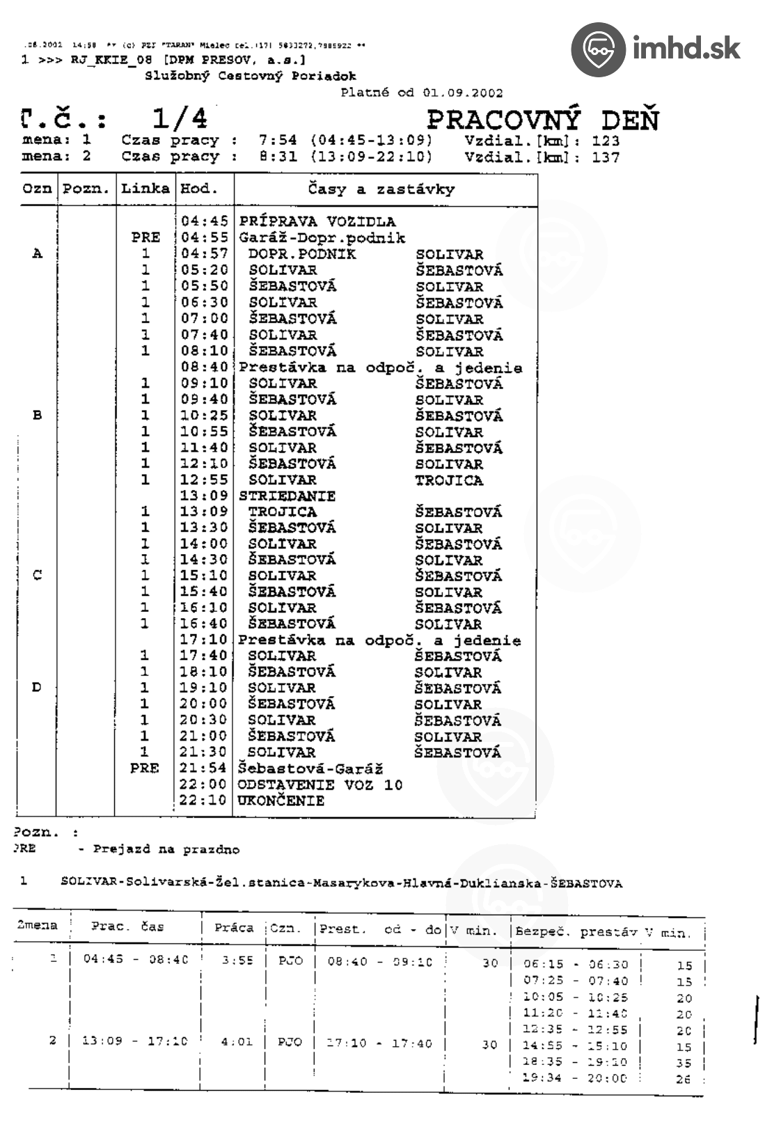 Služobné cestovné poriadky trolejbusových liniek z roku 2002 (20.12.2017)