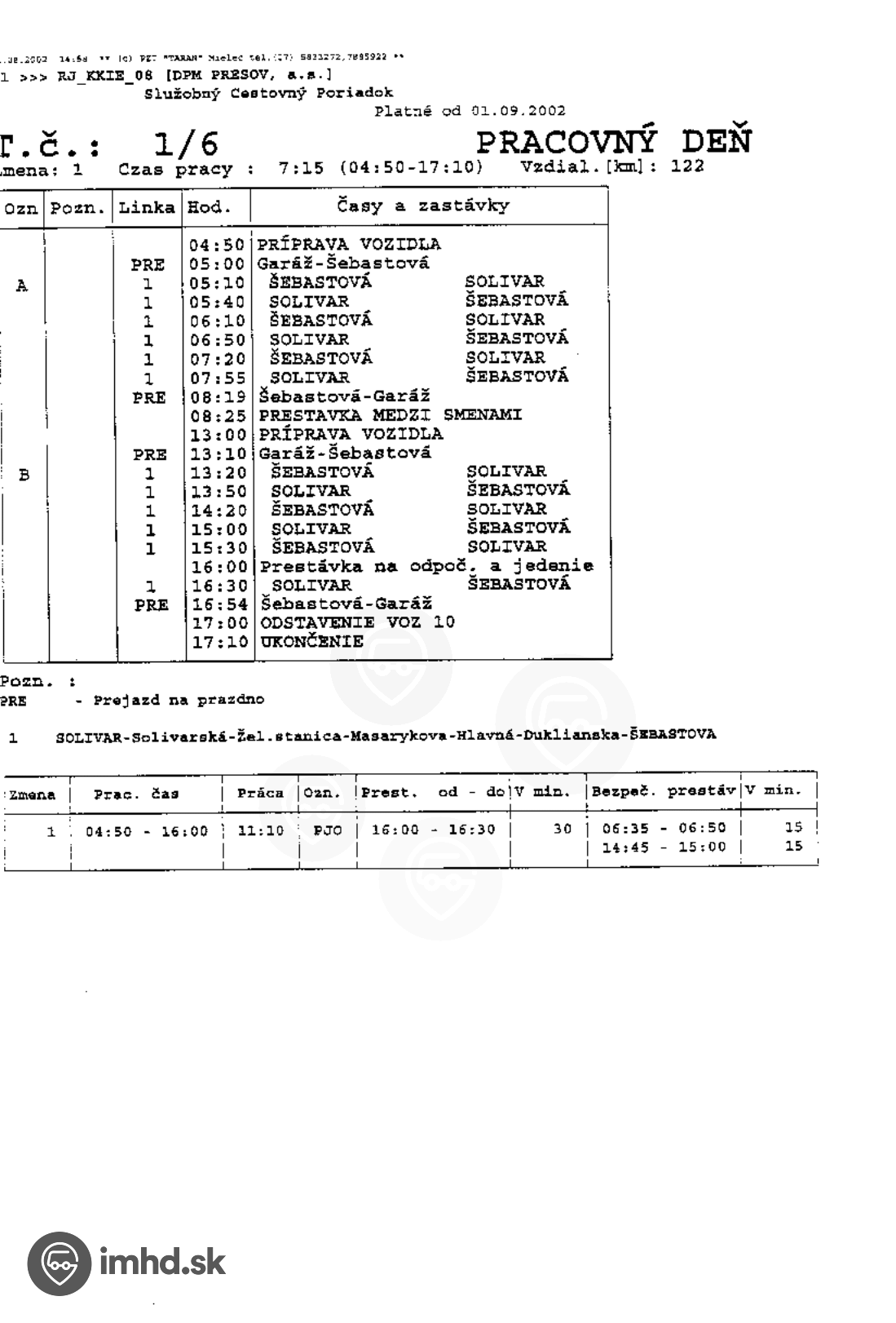 Služobné cestovné poriadky trolejbusových liniek z roku 2002 (20.12.2017)