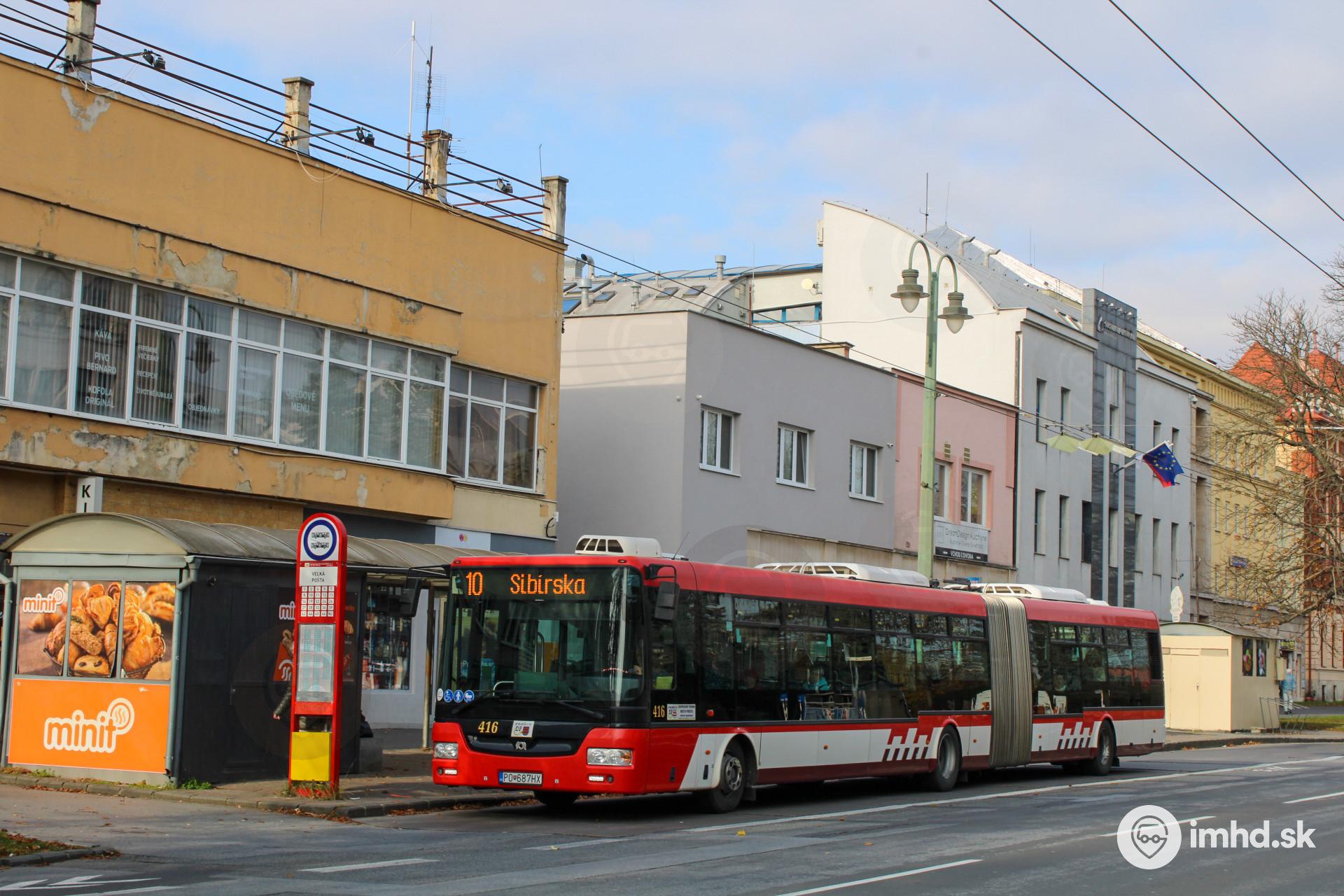#416, linka 10, Masarykova ul., zastávka Veľká pošta