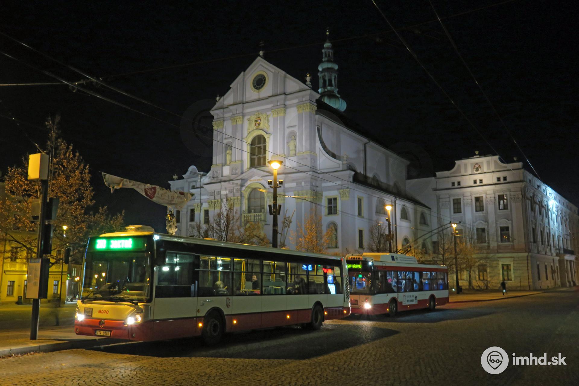 Irisbus Citelis 12M #156 a trolejbus Solaris Urbino na zastávke Dolní náměstí s Kostolom sv. Vojtecha.