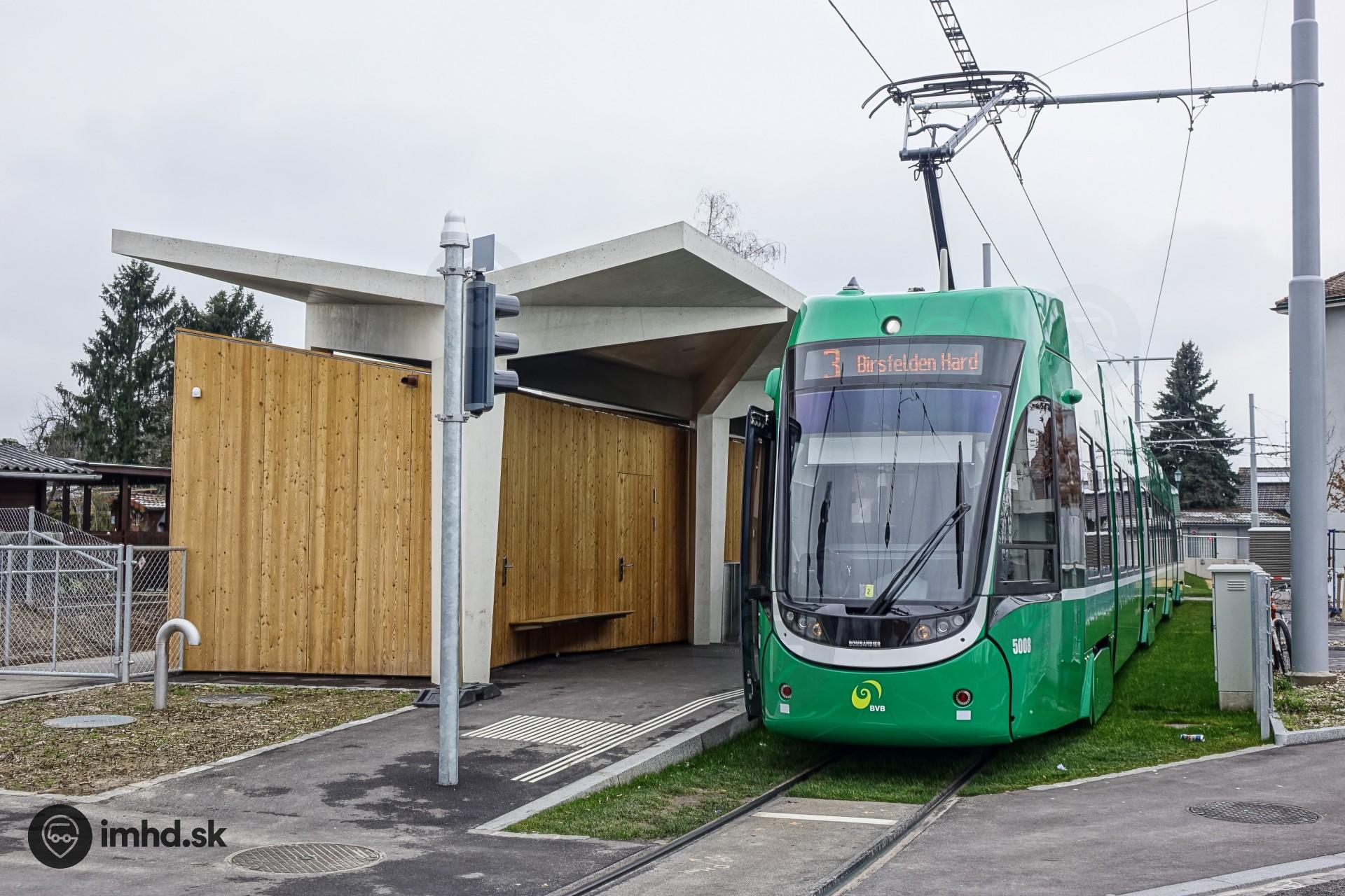 Električka Bombardier Flexity 2 Be 6/8 na spoji, ktorý začína na švajčiarsko-francúzskej hranici. Do Francúzska premáva každý druhý spoj.