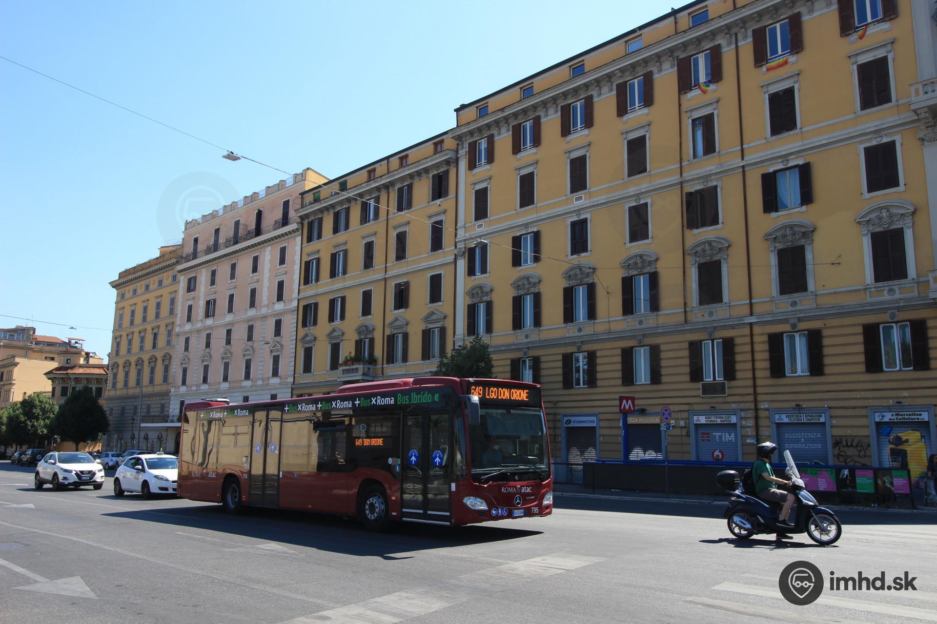 Mercedes na linke 649 prechádza okolo stanice metra Castro Pretorio.