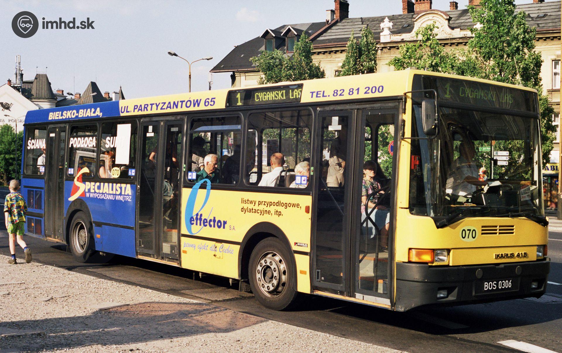 Ikarus 415.14 #070 smer Cigánsky les (Cyganski las) v zastávke Plac Żwirki i Wigury.