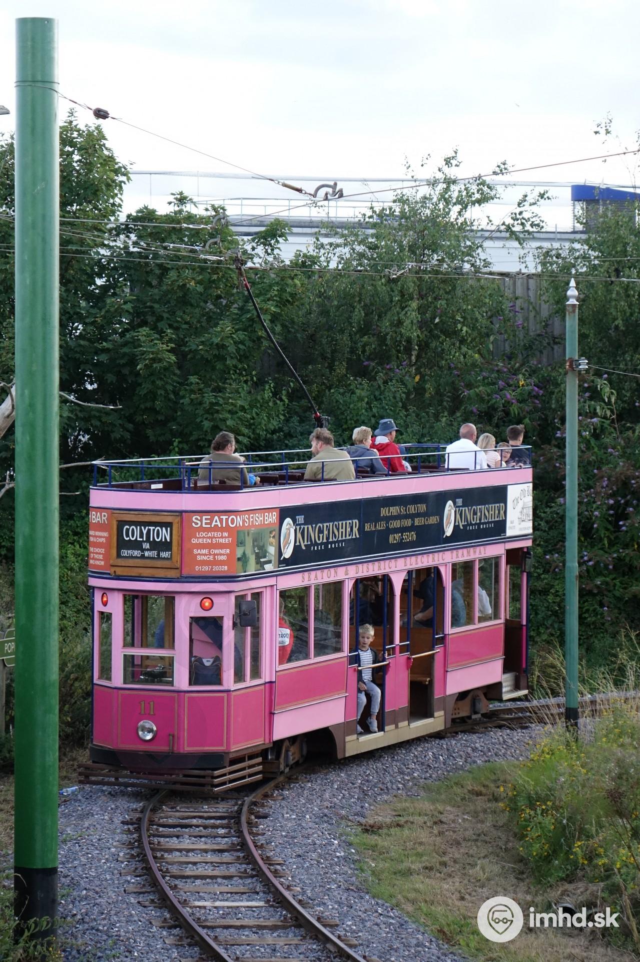 Električka #11 na 4,8 km dlhej trati Seaton Tramway.