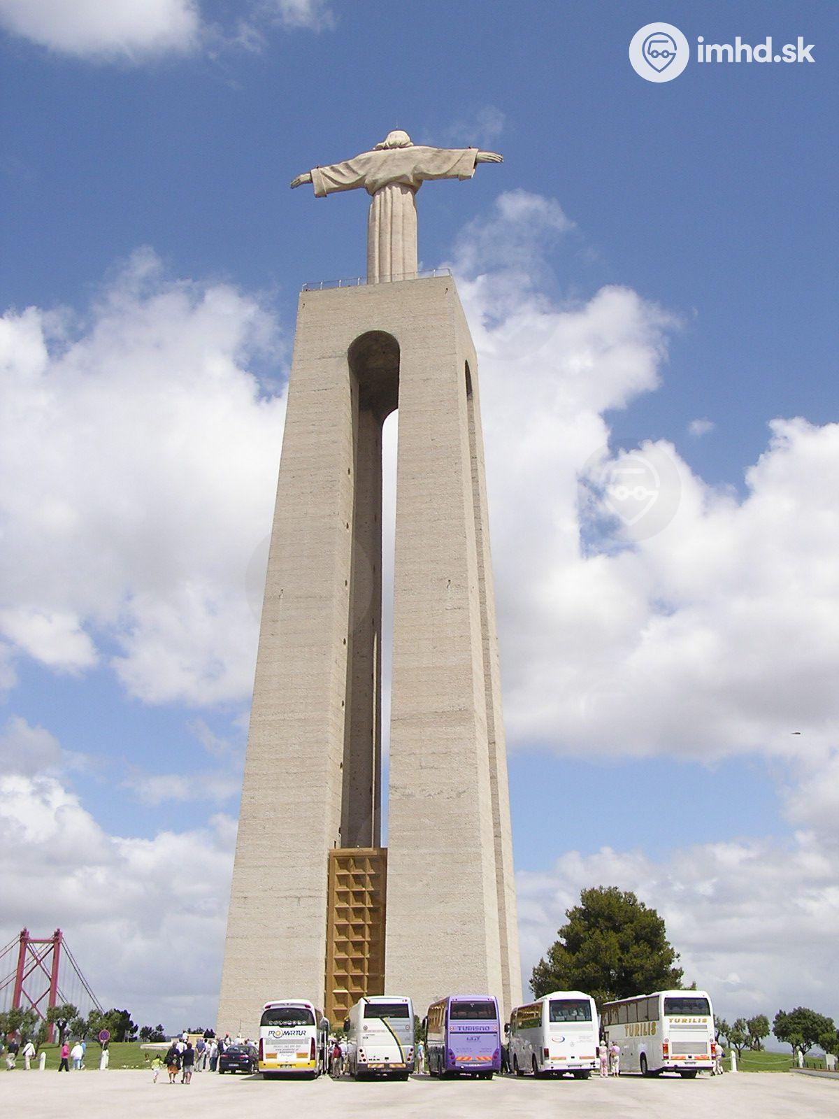 Turistické autobusy pri pamätníku Krista kráľa (Monumento a Cristo Rei) v Almade