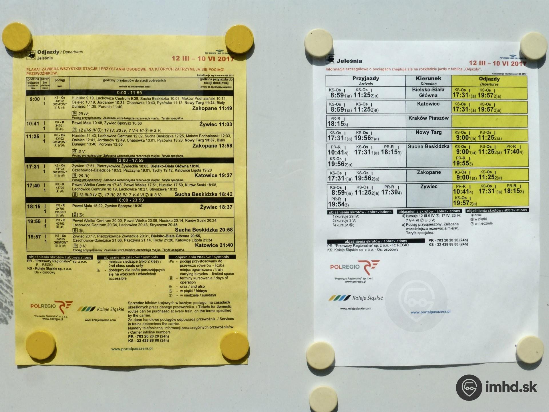 Cestovné poriadky v železničnej stanici Jeleśnia