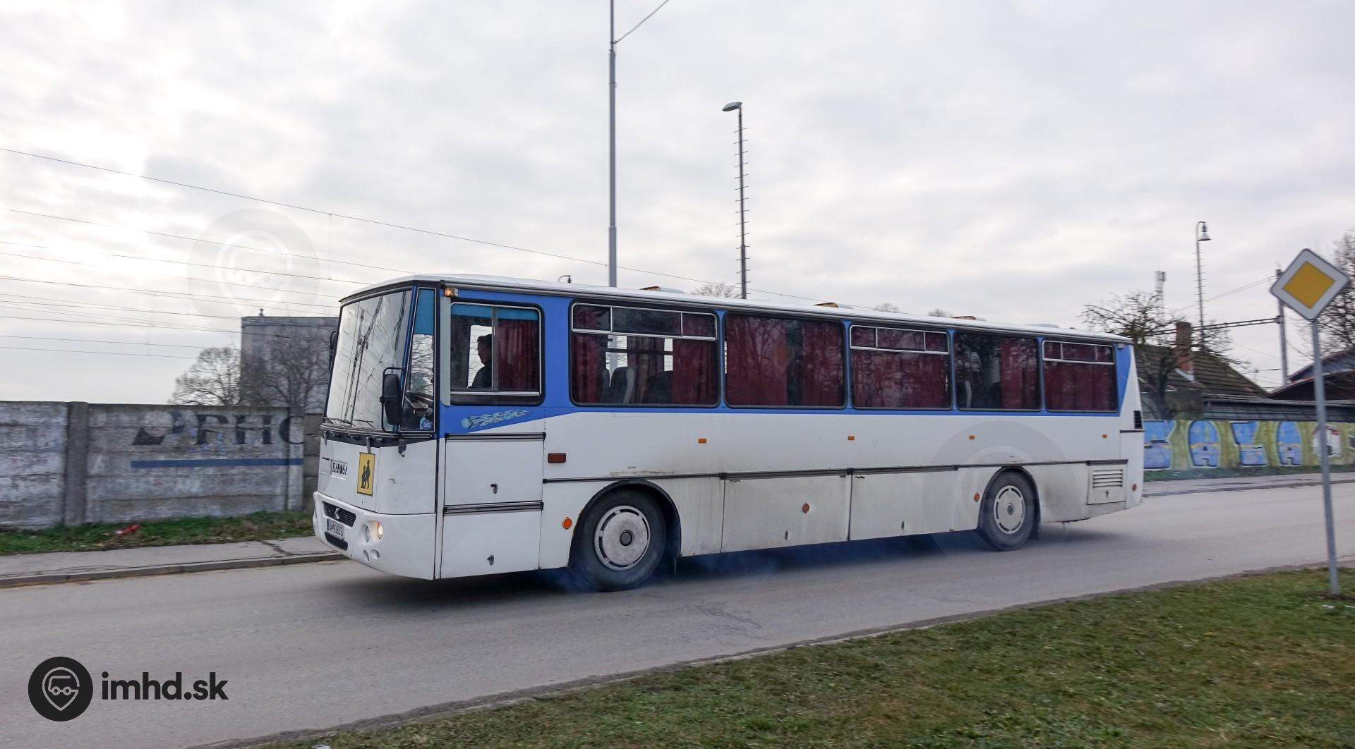 Dymiaca Karosa LC 735 patriaca Strednej odbornej škole obchodu a služieb v Galante prechádza popri ŽST Šaľa.