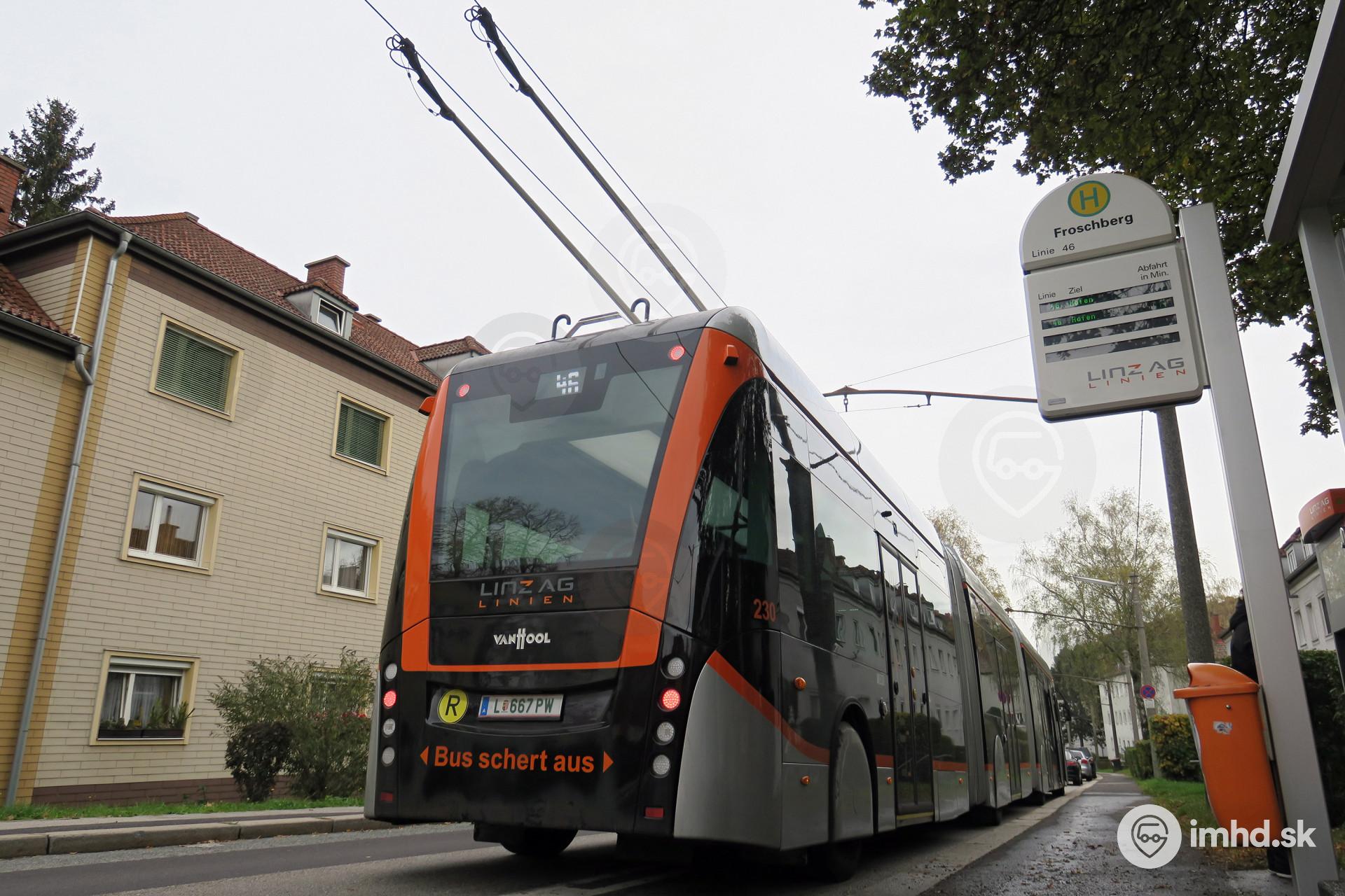 Trolejbus Van Hool Exqui.City 24T #230 pred odjazdom z konečnej zastávky Froschberg.