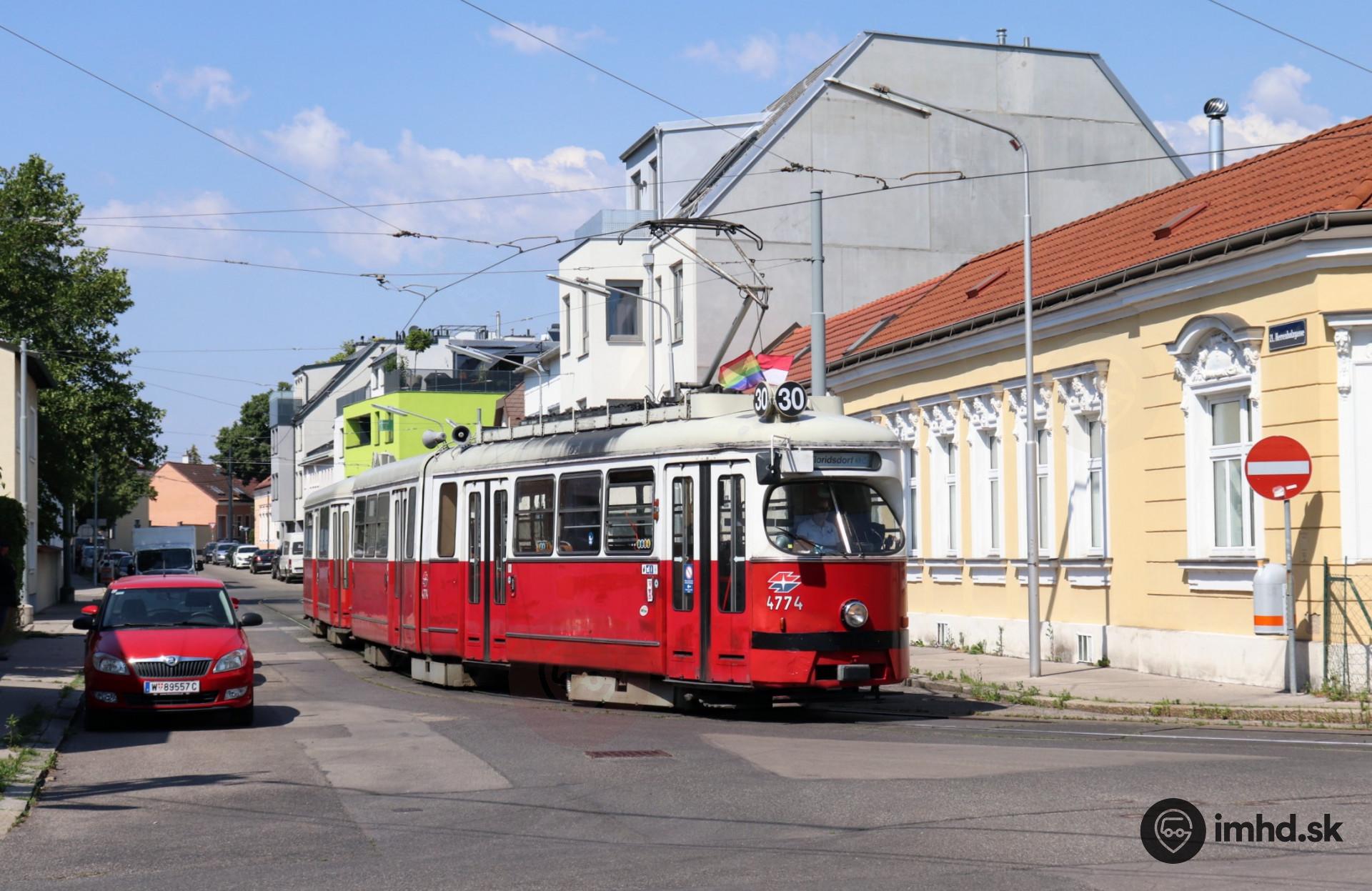 Tradičná Viedenská električka E1 v predposlený deň v pravidelnej premávke