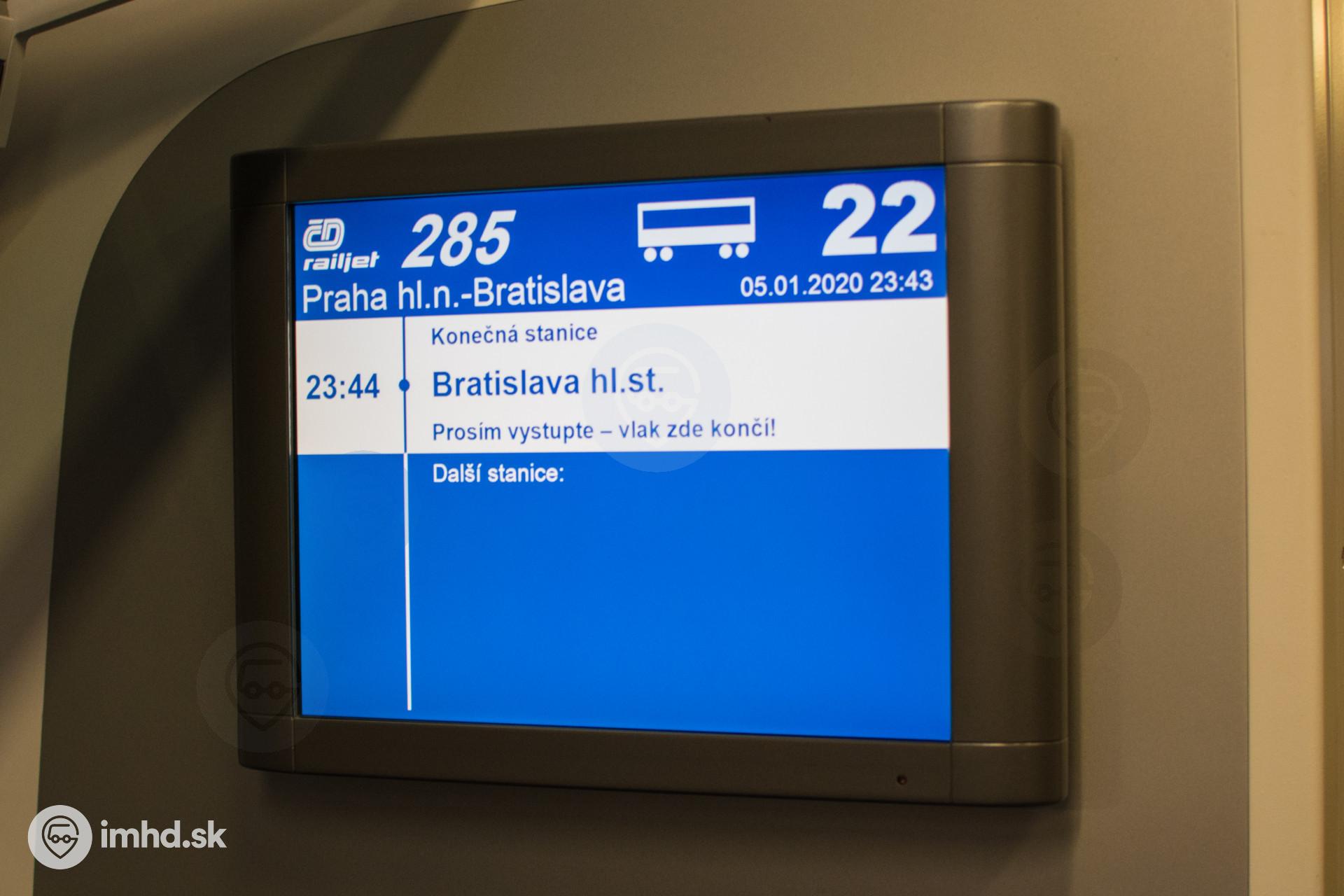 Obrazovka v ucelenej jednotke Railjet