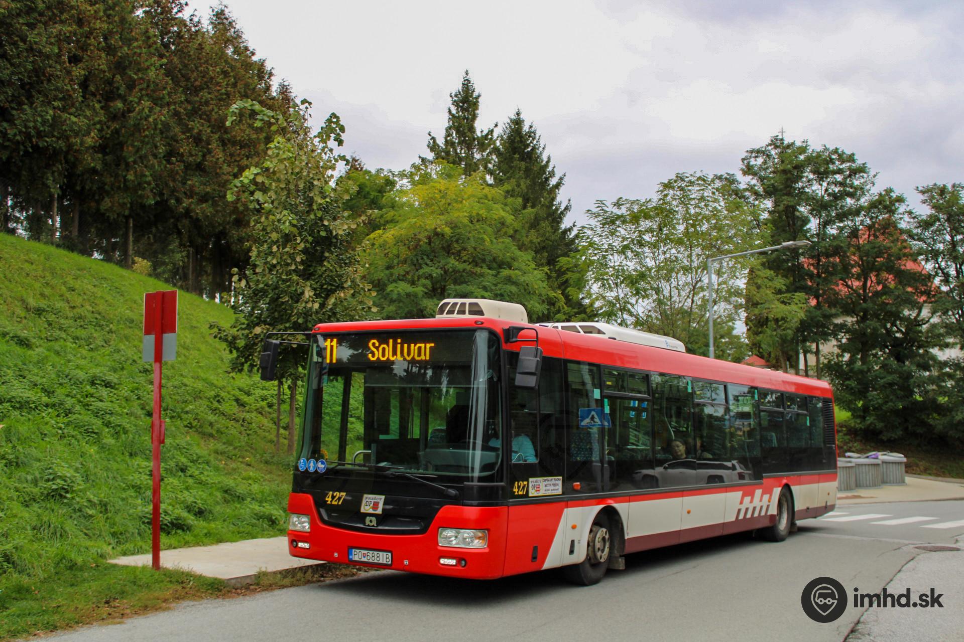 #427, route 11, Ulica Pod Hrádkom, zastávka Cintorín Solivar