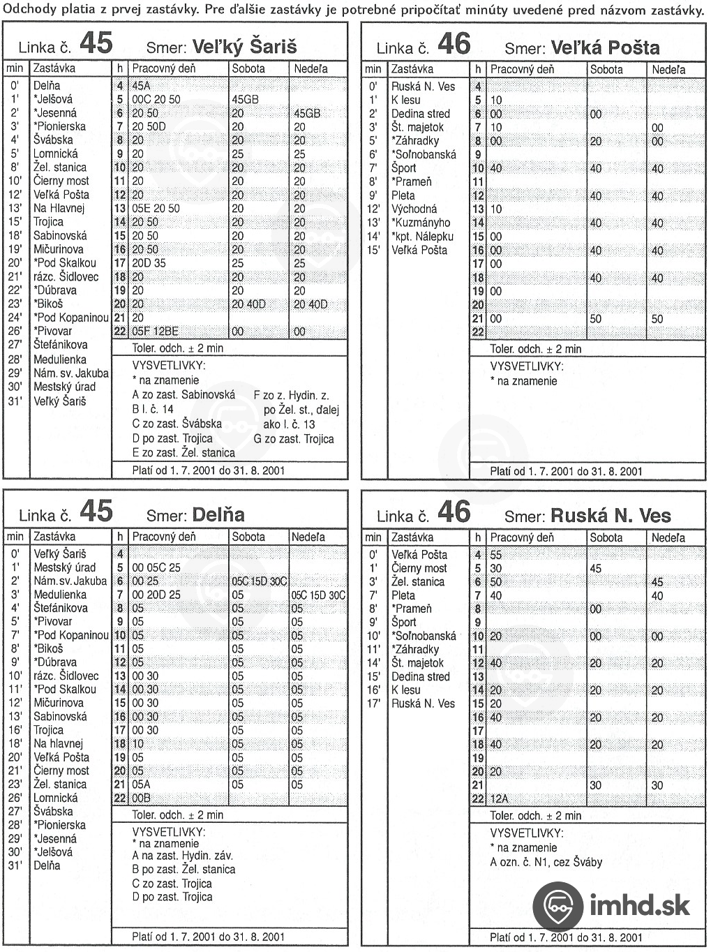 Knižný cestovný poriadok - leto 2001