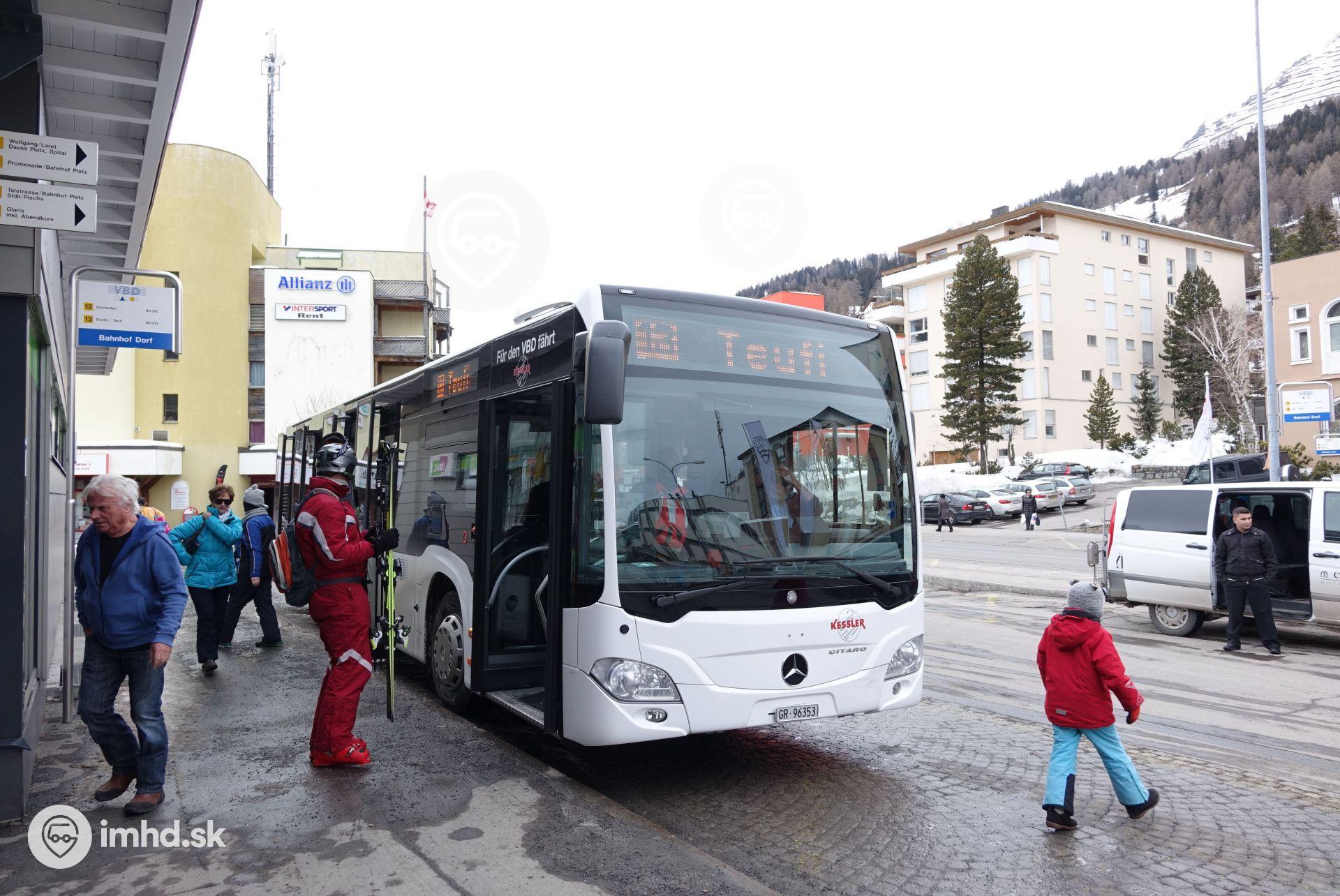 #GR 96353, route 13, Bahnhofstrasse, zastávka Davos Dorf