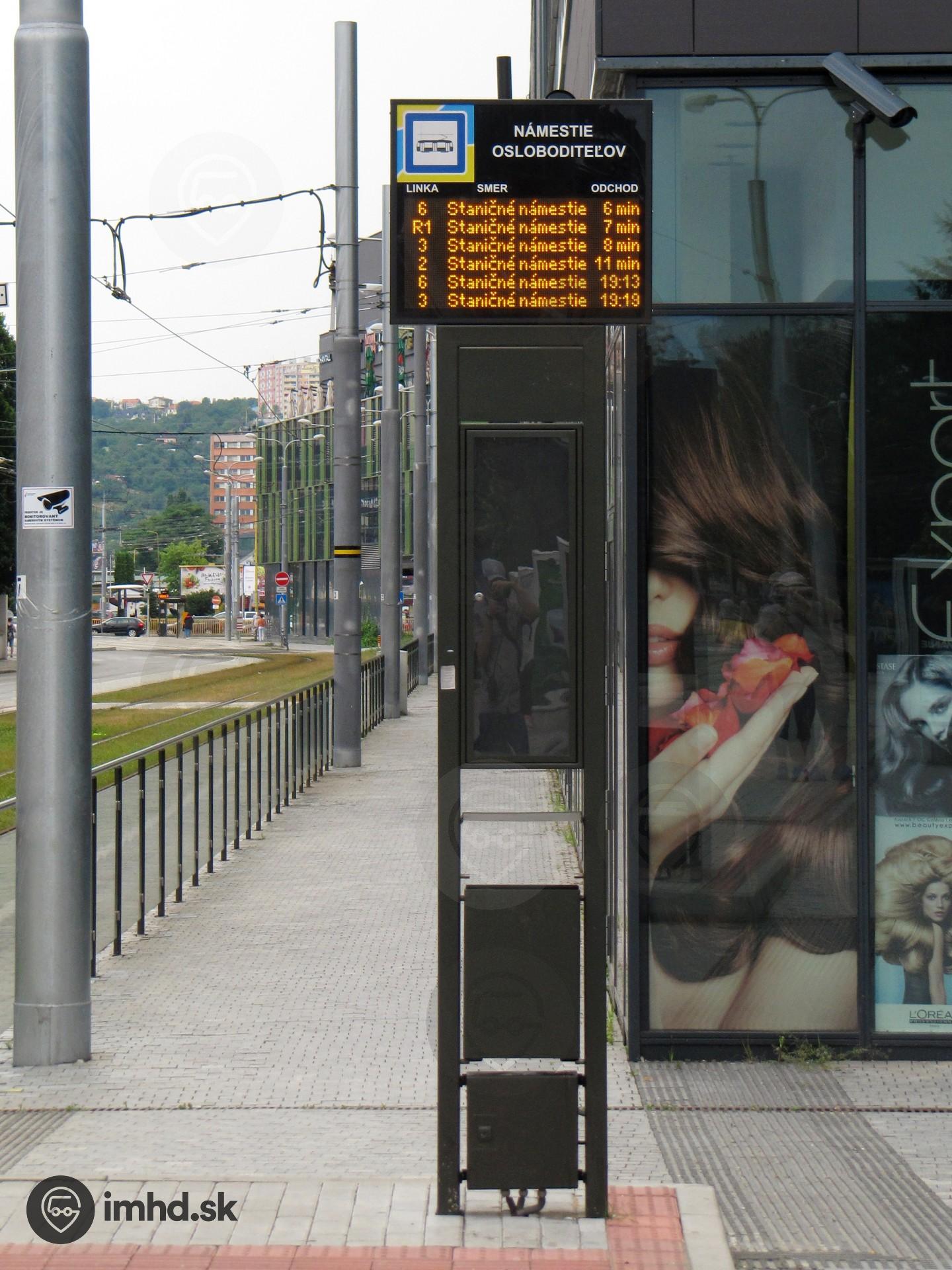 Označník zastávky Námestie osloboditeľov so zastávkovým displejom.