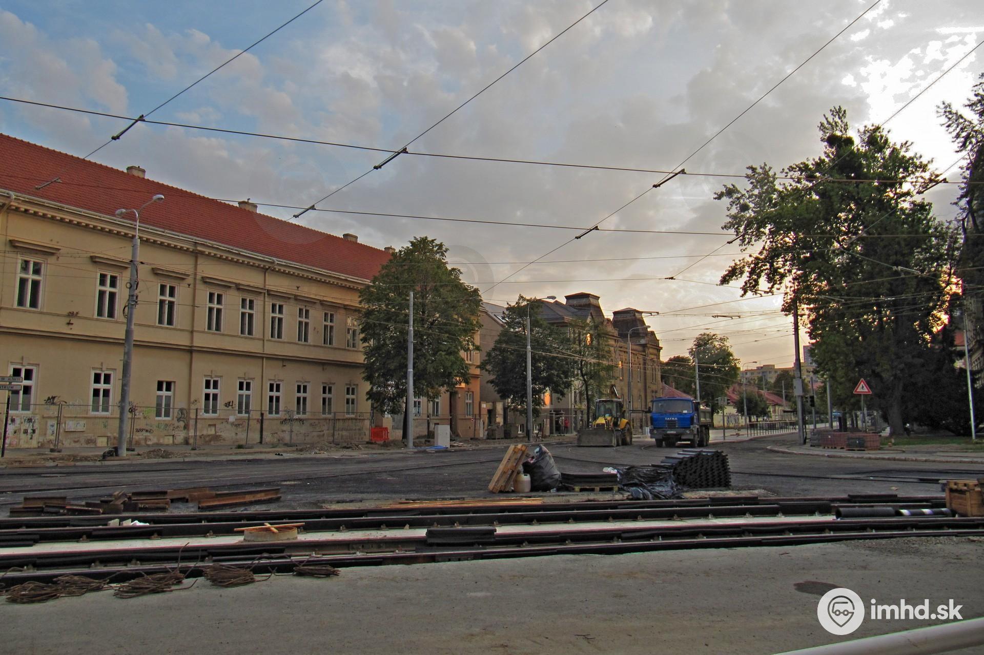 Električková križovatka na Námestí Maratónu mieru pred dokončením