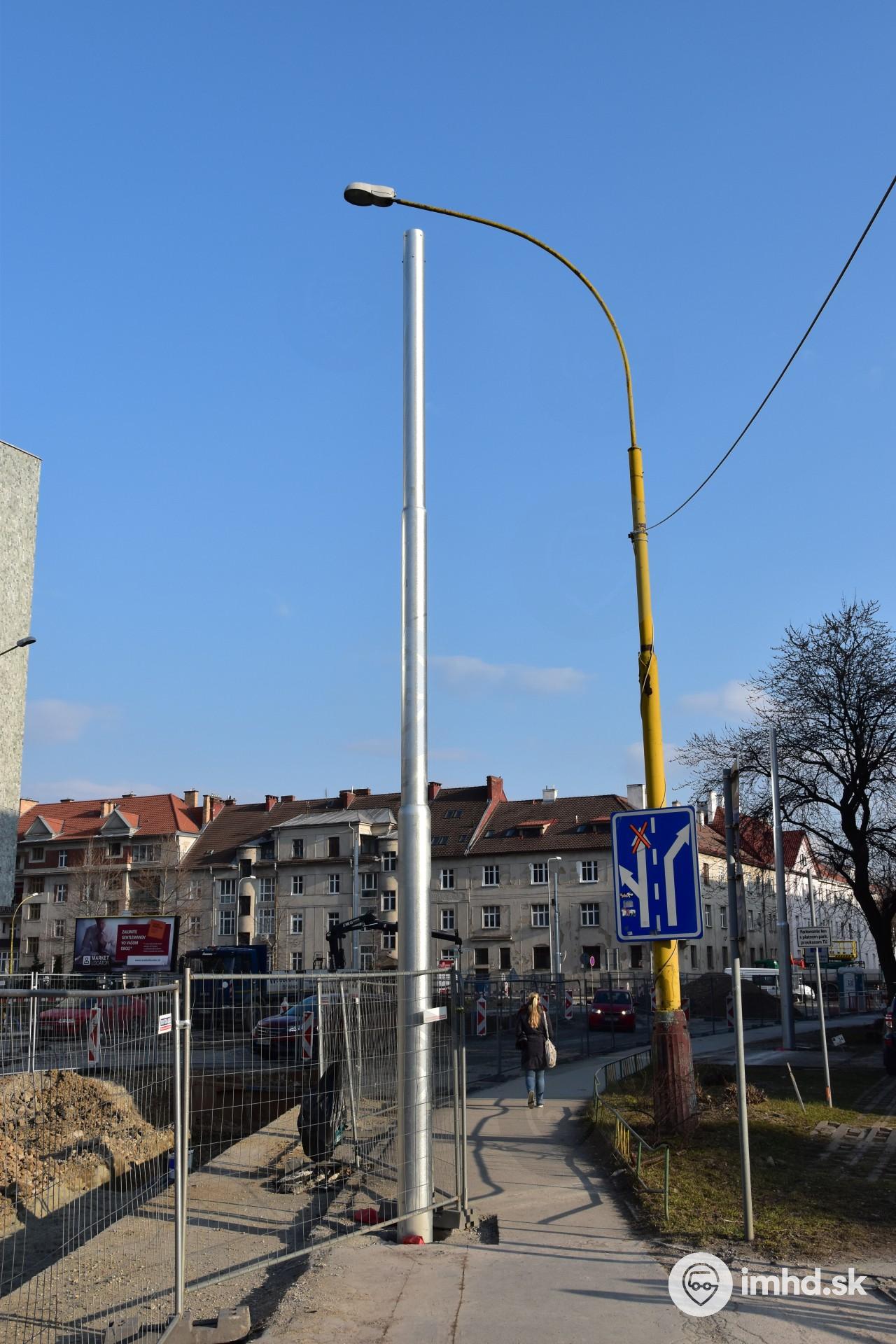 Nový stĺp uprostred chodníka.