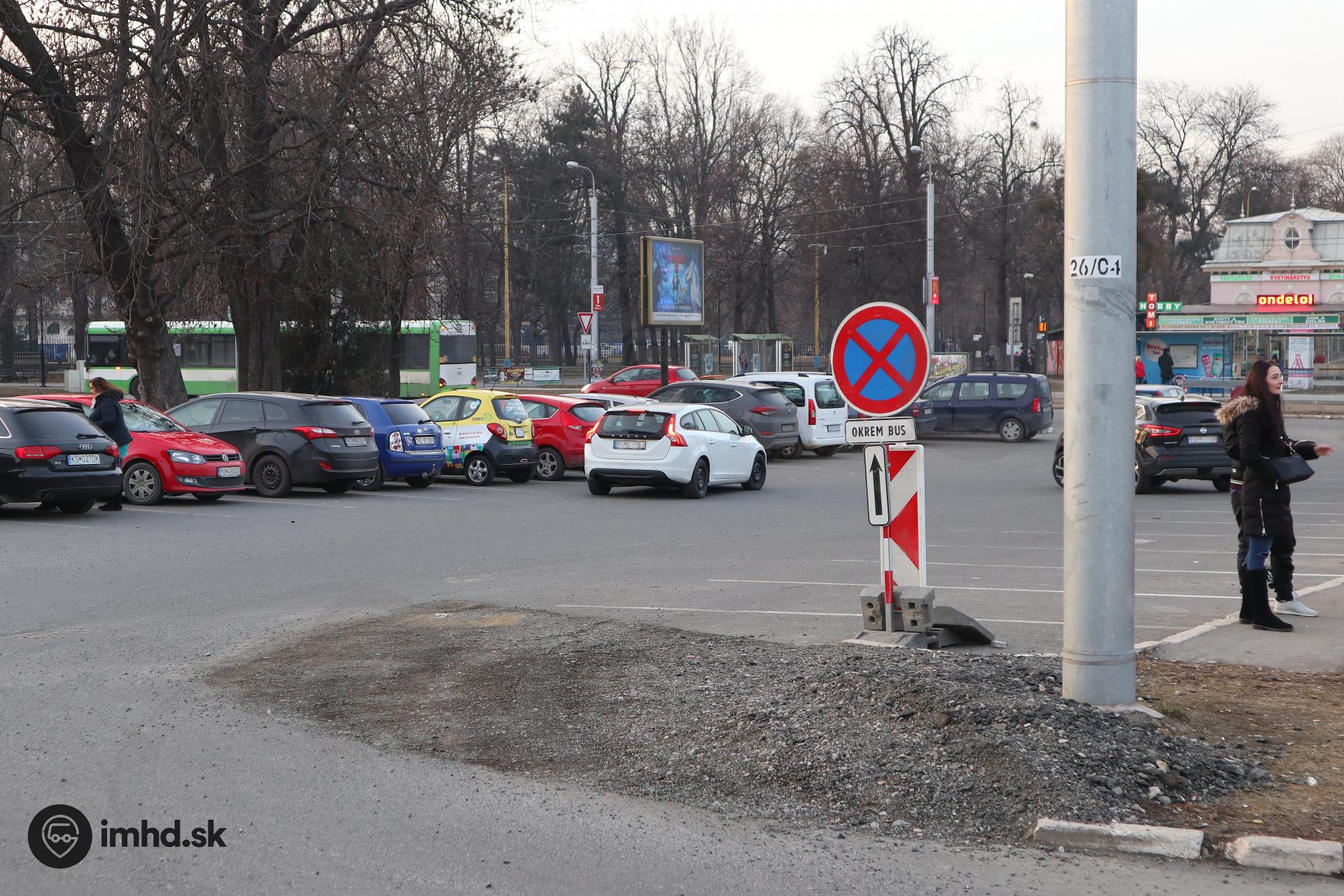 Pri príležitosti zriadenia dočasných stanovíšť v priestore parkoviska bola zlikvidovaná časť obrubníkov a nasypaný štrk