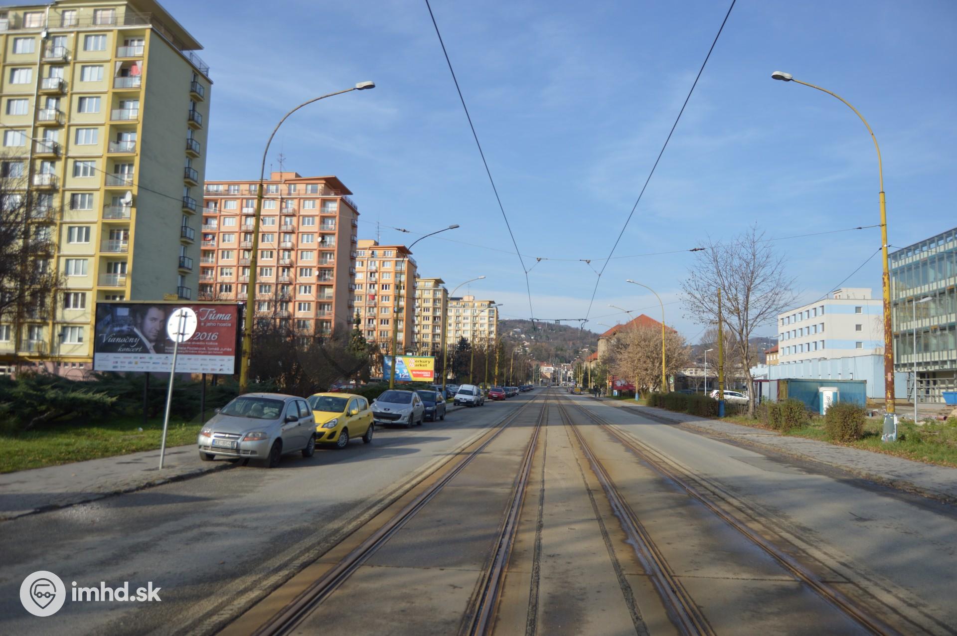 Pohľad na trať smerom od OD Merkúr ku obratisku Botanická záhrada.