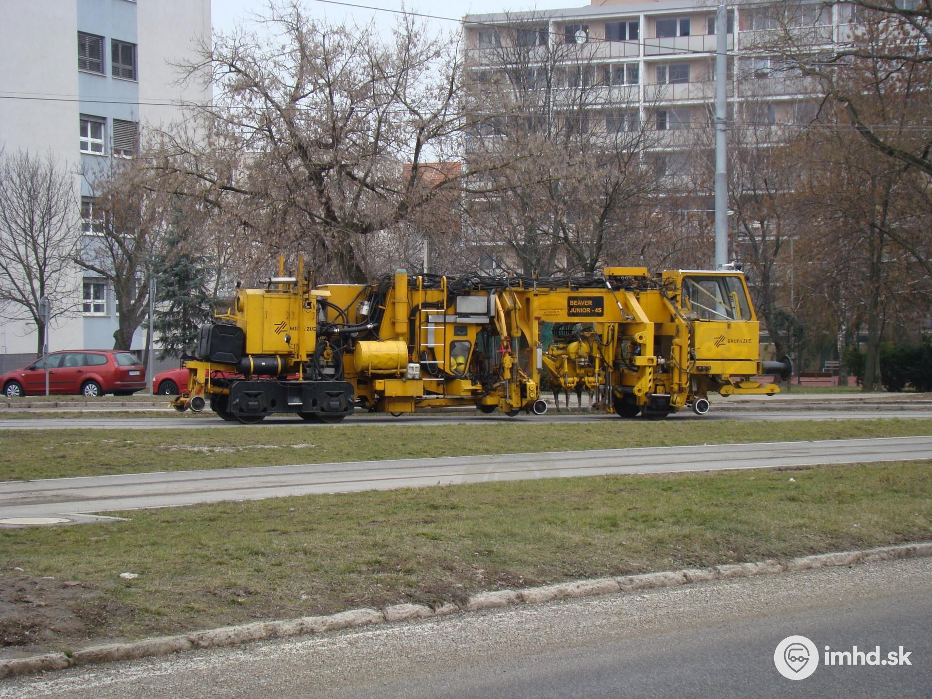 Podbíjačka po skončení prác na oprave električkovej trate na Triede SNP.