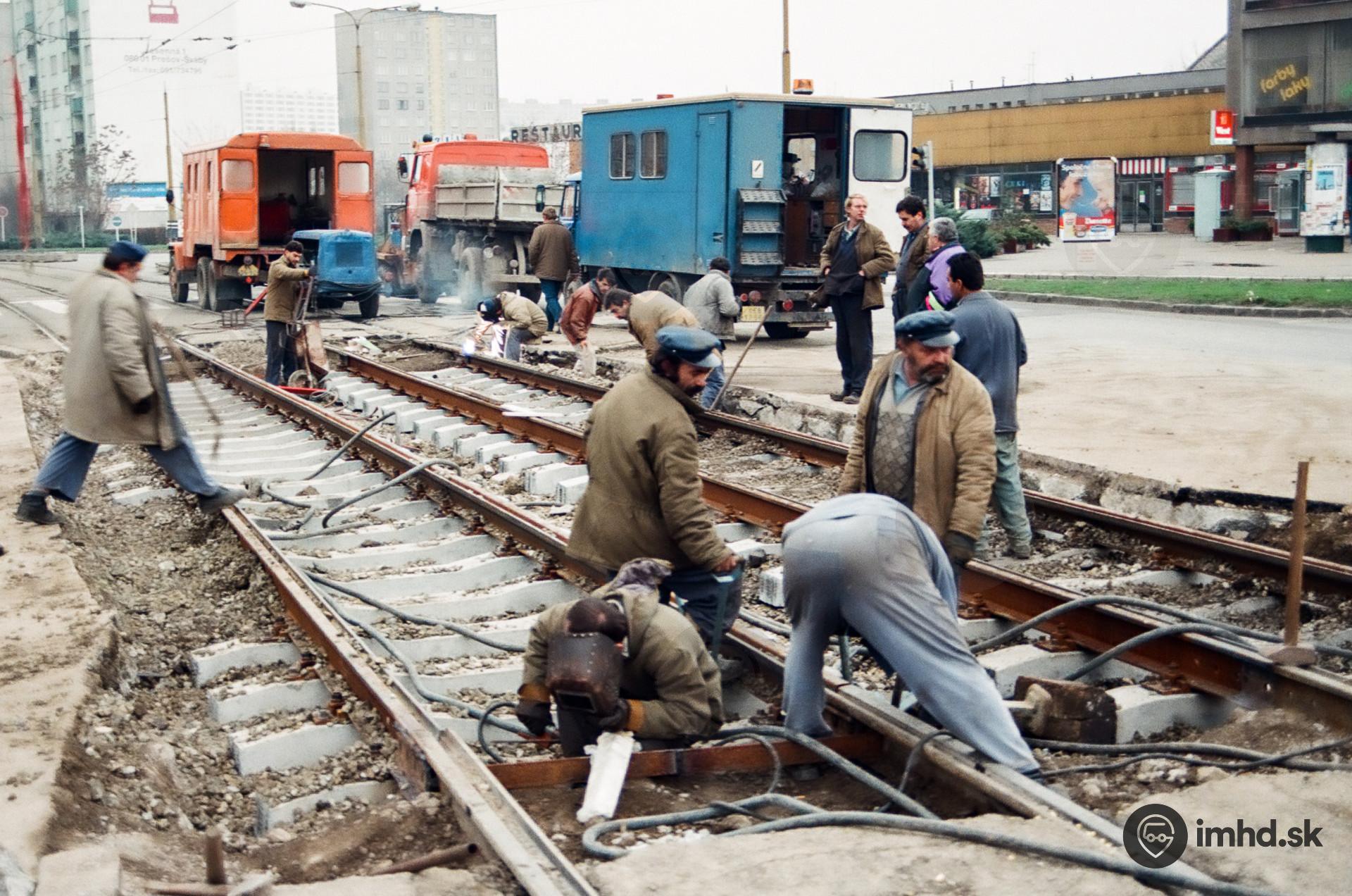 Výmena koľají pri Astórii.