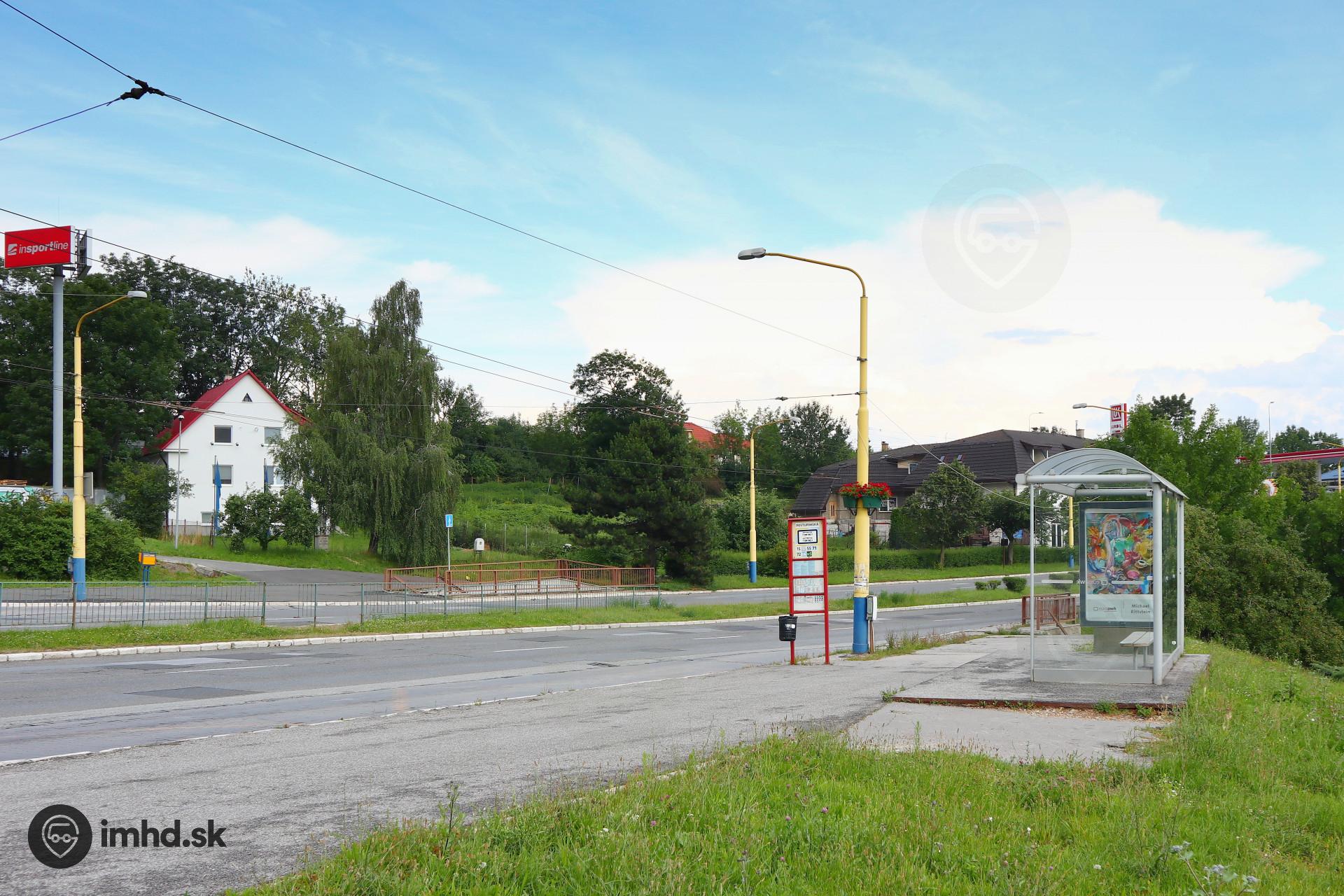 Stanovište zastávky Postupimská v smere k miestnemu úradu.