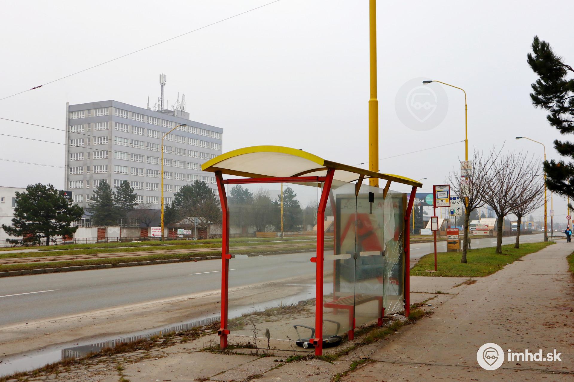 Zanedbane vyzerajúce autobusové stanovište zastávky Katastrálny úrad