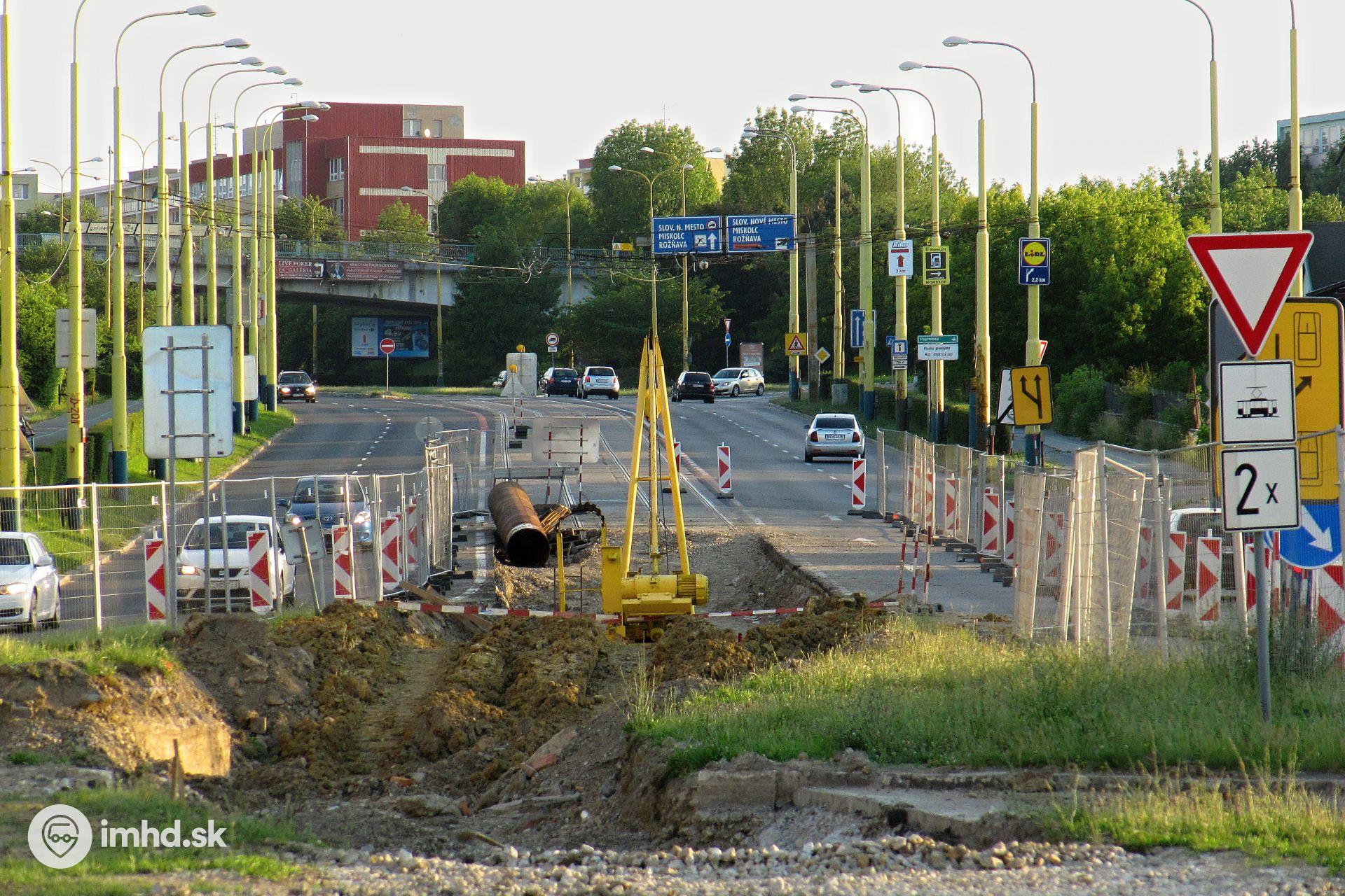 Pohľad na električkovú trať smerom k nemocnici.