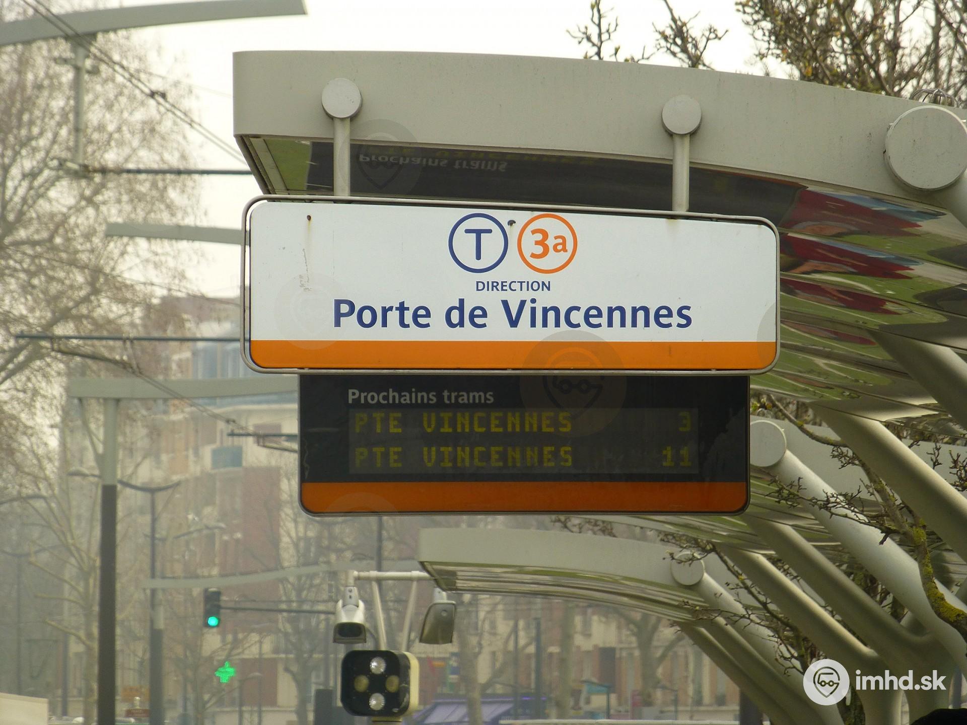 Vyznačený smer jazdy a najbližšie odchody na zastávke Porte d'Italie.