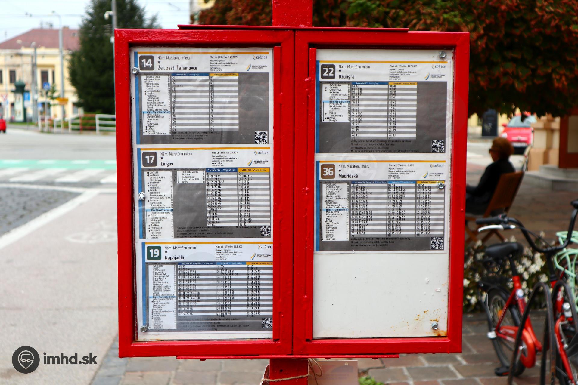 Route 14, 17, 19, 22, 36, Hlavná ul., zastávka Námestie Maratónu mieru