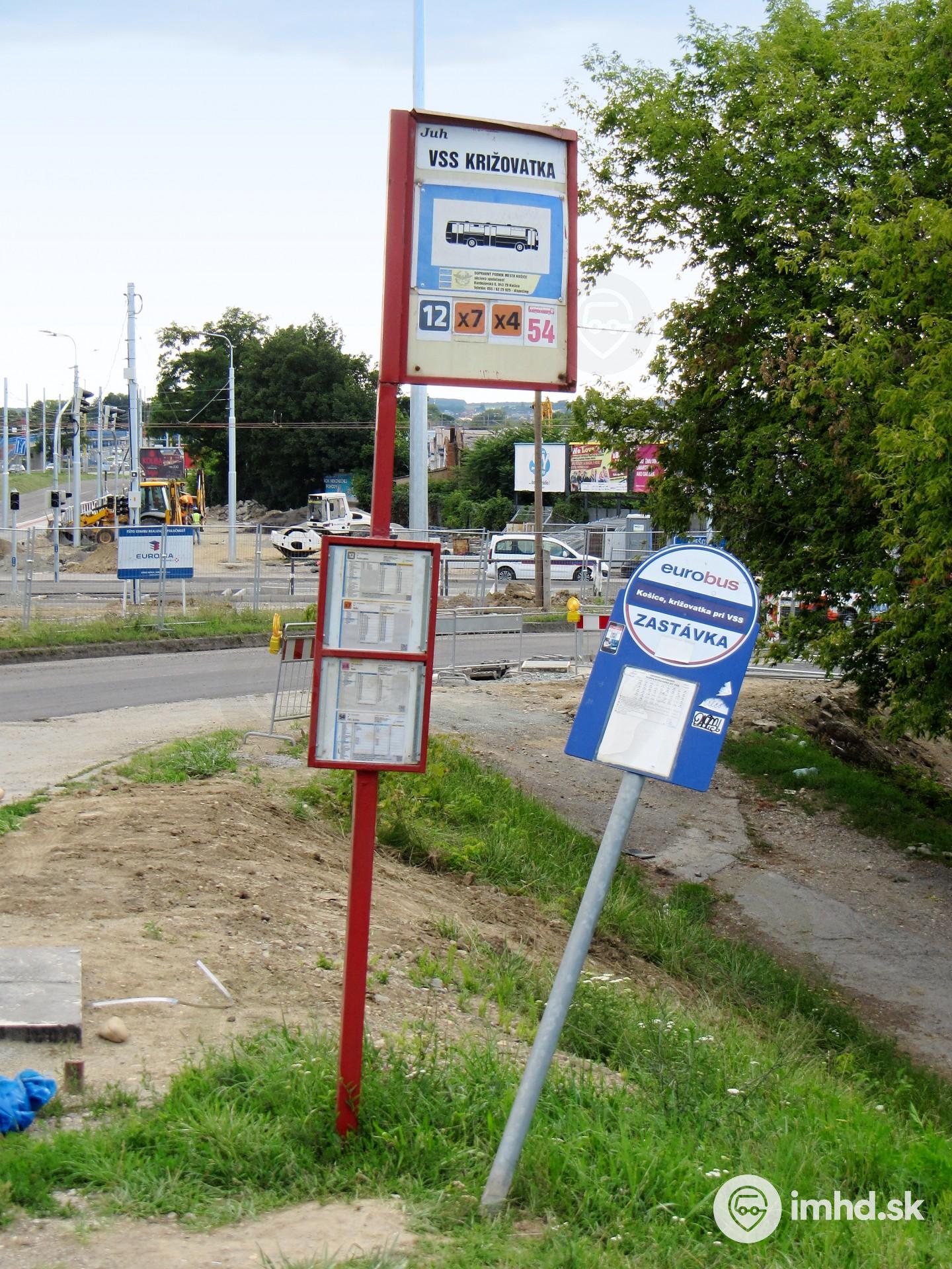 Route X4, X7, 12, 54, Nižné Kapustníky, zastávka VSS, križovatka