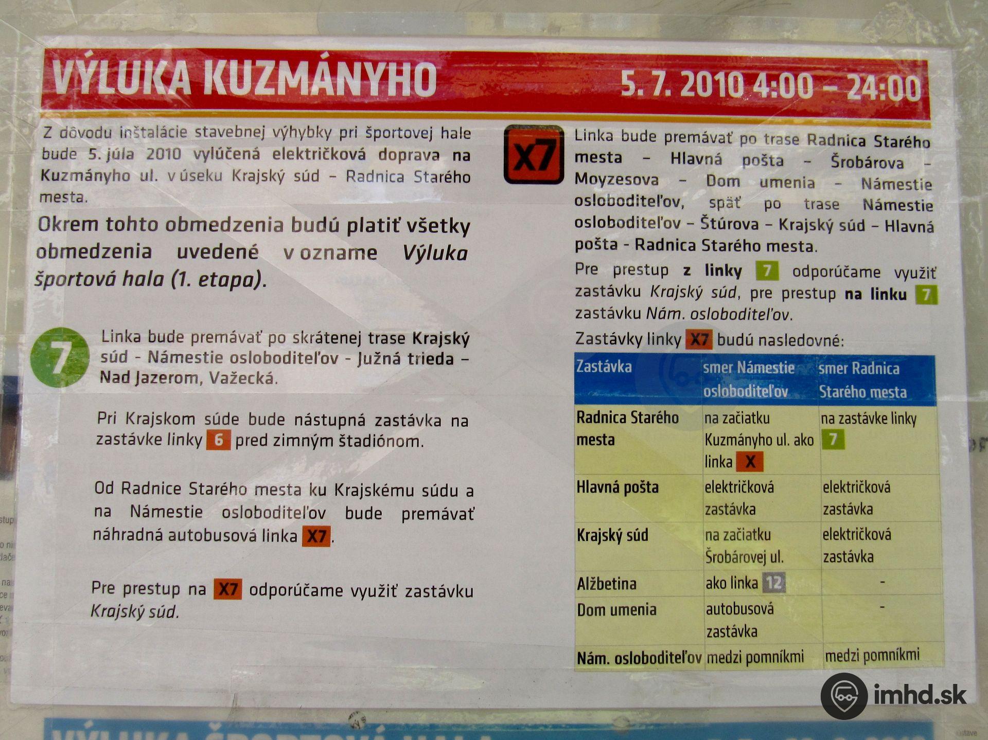 Route 7, X7, Kuzmányho ul., zastávka Radnica Starého mesta