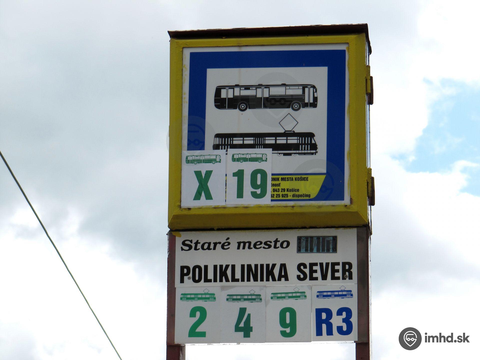 Route X, 19, Komenského ul., zastávka Poliklinika Sever