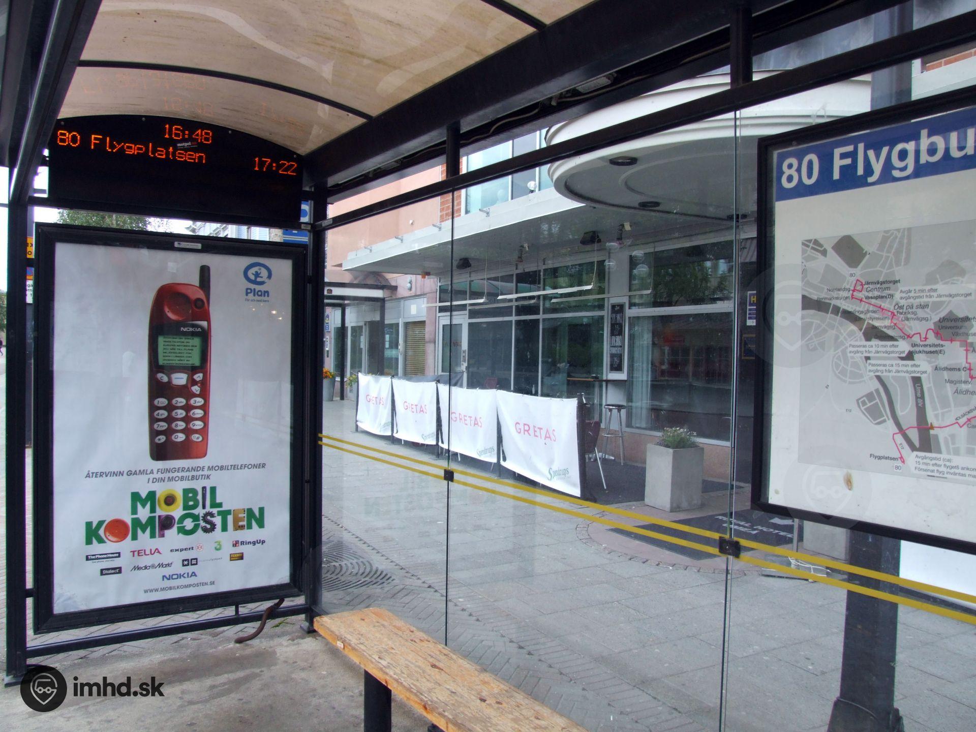 Zastávka linky 80 smerujúcej na letisko.