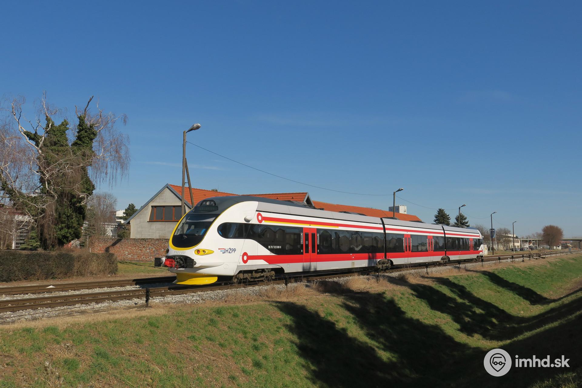 Motorová jednotka HŽ radu 7023 smerujúca do obce Kotoriba.