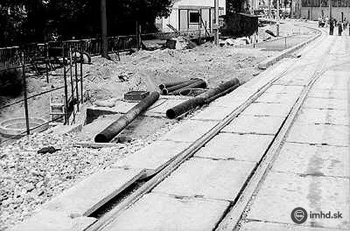 Výstavba električkovej trate na Kapucínskej ulici.