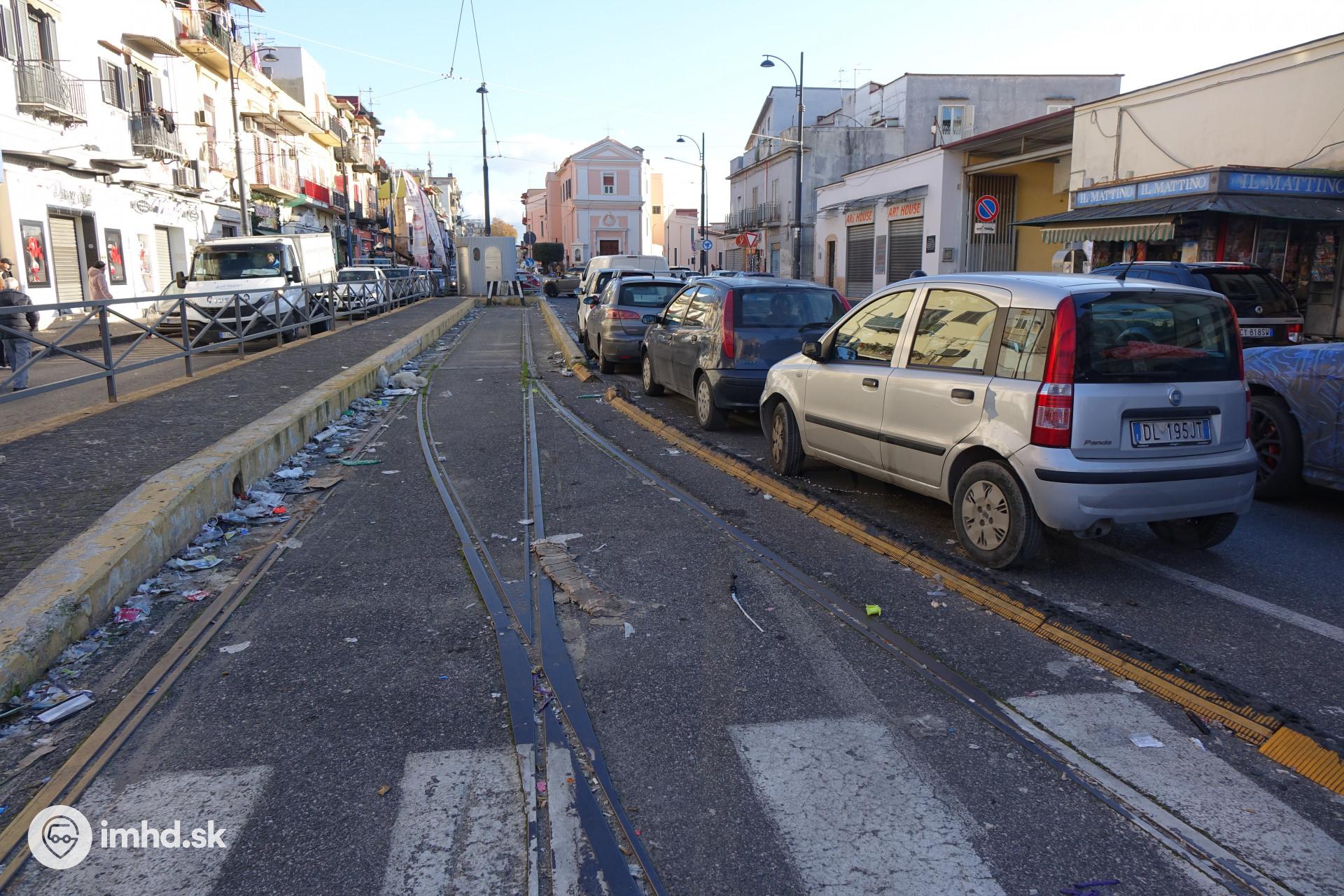 | Opustená bývalá konečná električkovej linky 1 na hraniciach Neapolu. Trať do týchto miest bola obnovená v roku 2013 a dočasne zatvorená v roku 2016 najskôr kvôli rekonštrukcii trate z depa a neskôr kvôli výstavbe metra. | |