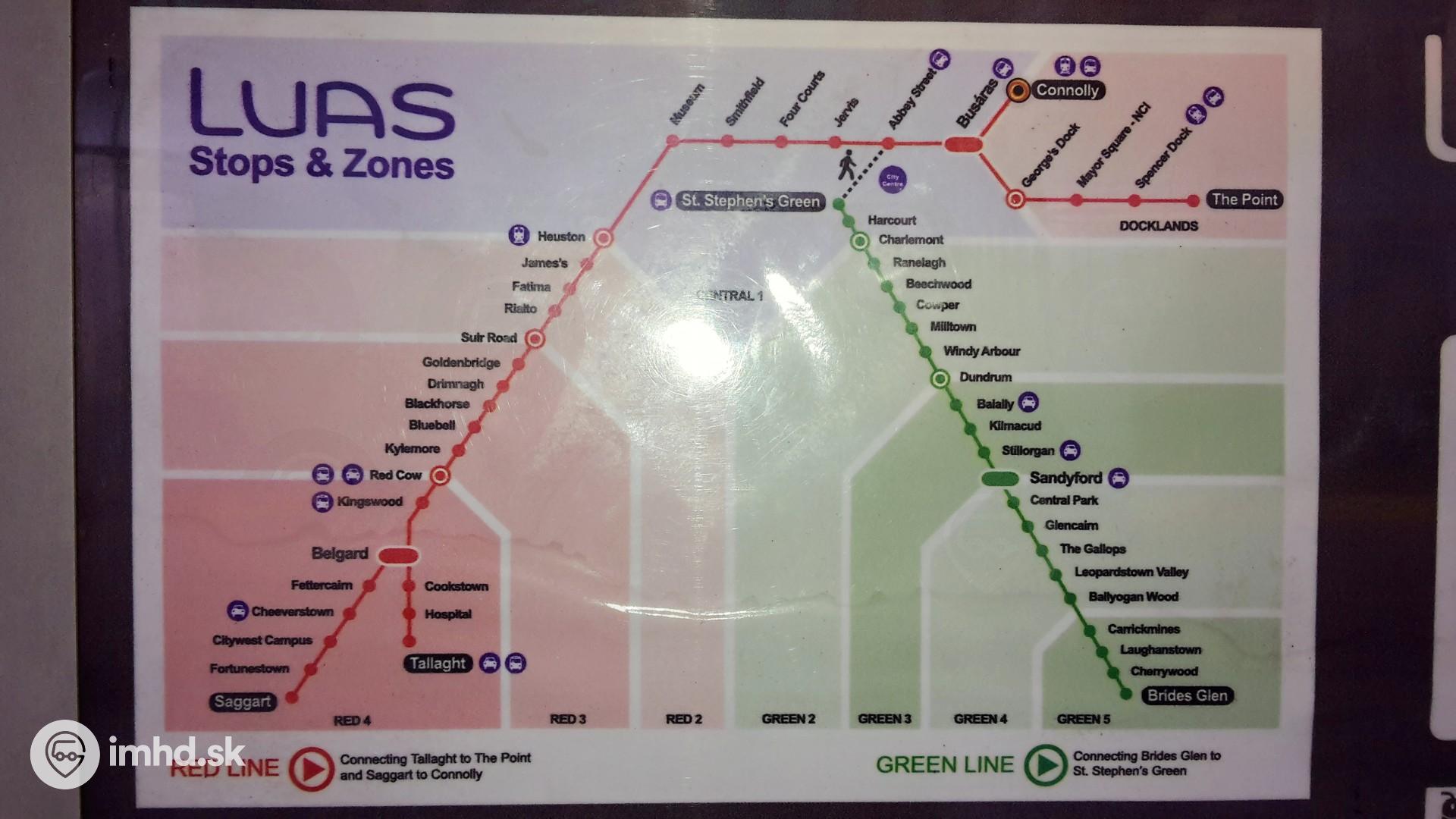 Schéma liniek systému Luas - dublinskej električky.