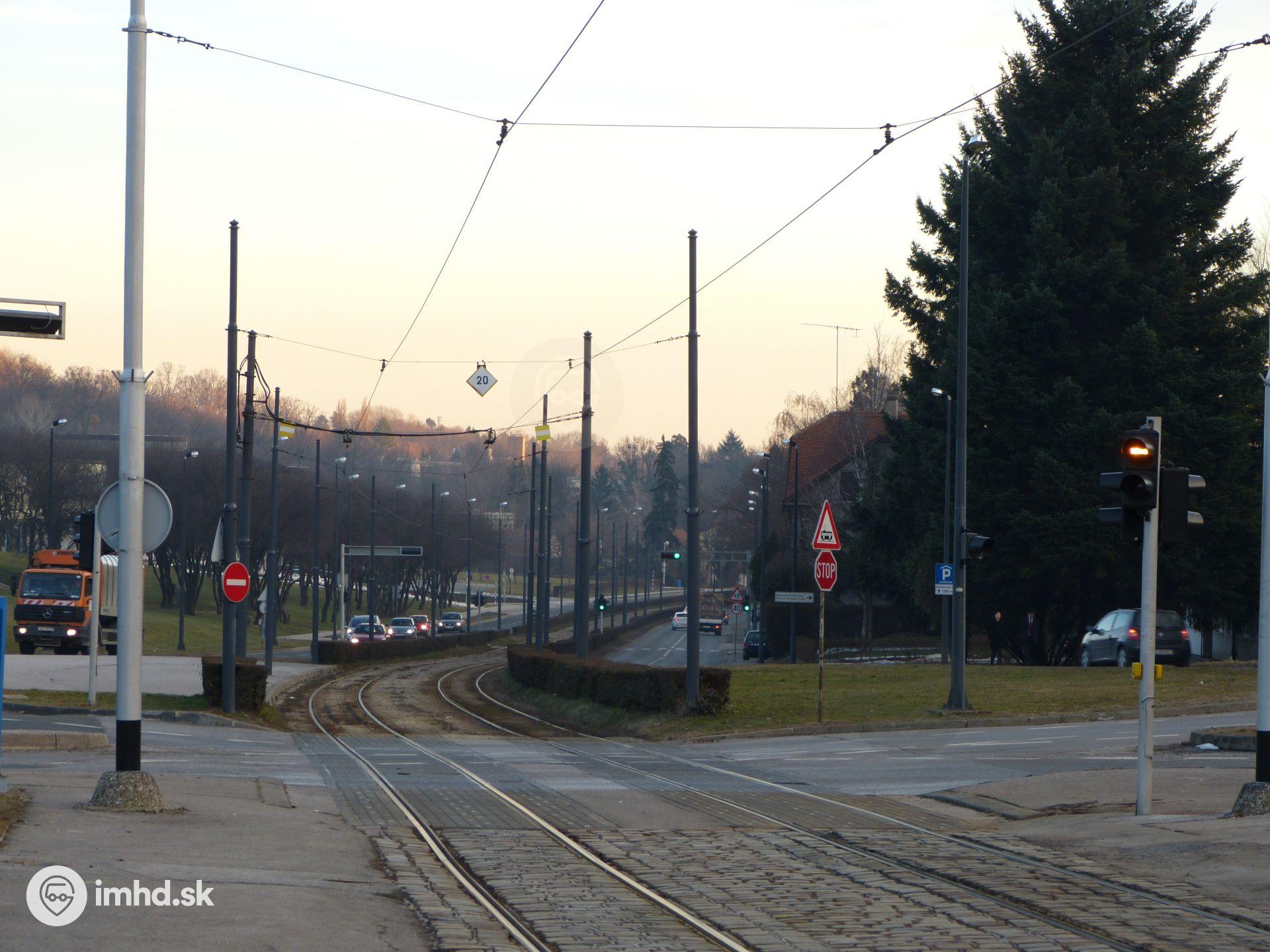 Električková radiála na Mihaljevac je lemovaná zeleňou, električka tu má prednosť