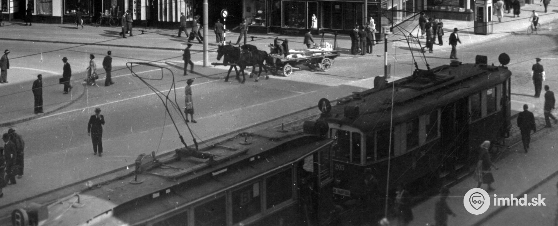 Dvojstovák #205 na zastávke na Kamennom námestí.
