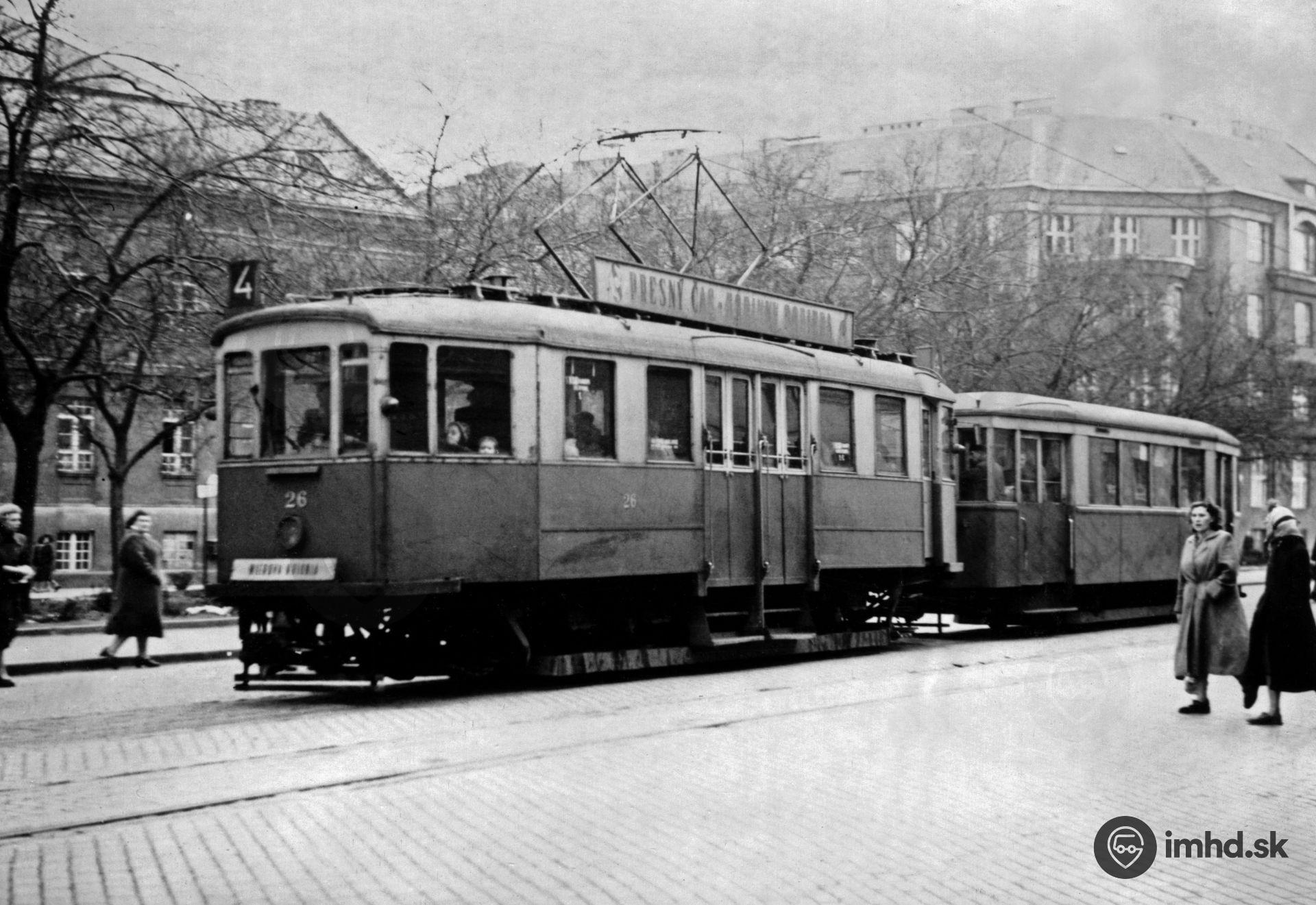 Dvojstovák #26 s vlečniakom SGP na Odborárskom námestí.
