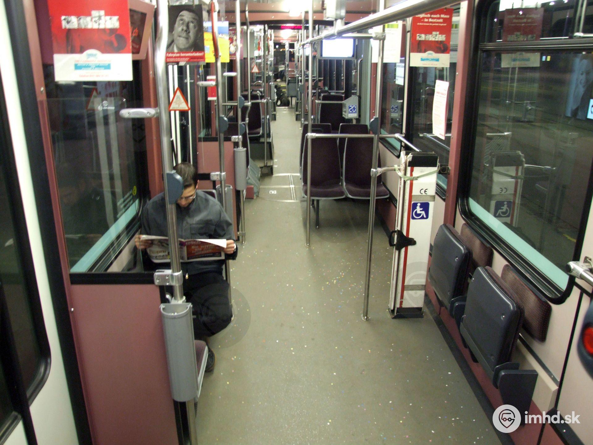 Interiér vozidla Vevey / ABB / Düwag síce nie je nízkopodlažný, umožňuje však pohodlný nástup, výstup i cestovanie.